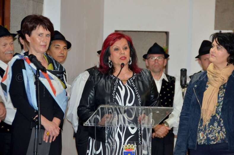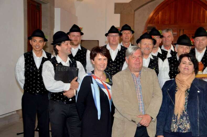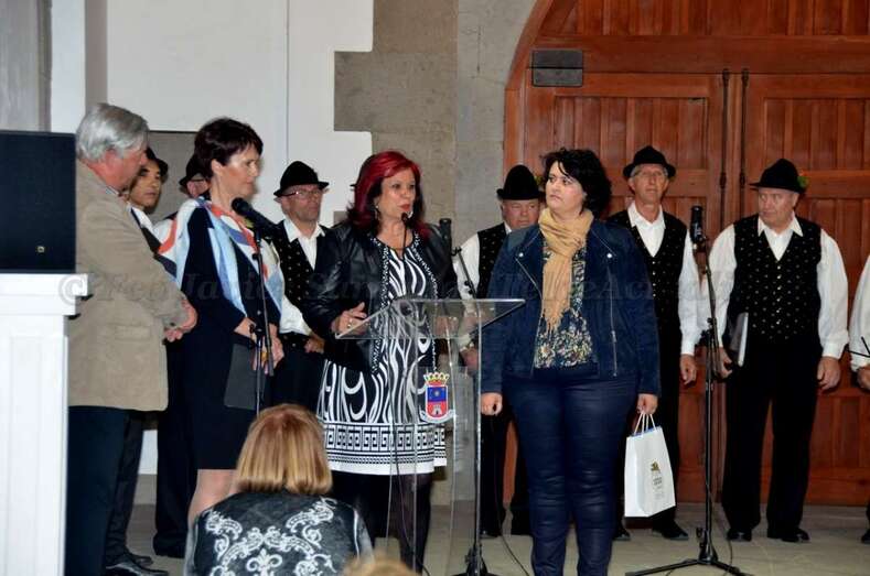 La delegación de la ciudad eslovena de Bled fue recibida en la plaza de San Juan por la vicealcaldesa Celeste López y la concejala de Participación Ciudadana, Saro Sosa, y desde allí se fueron a la cercana ermita de San Pedro Mártir, donde tendría lugar el concierto del coro.