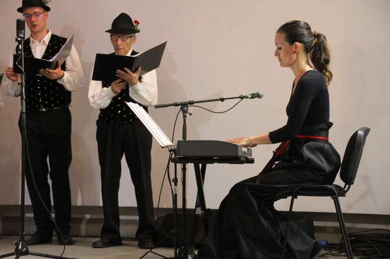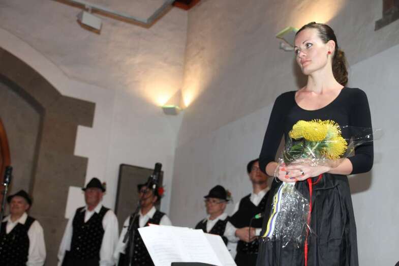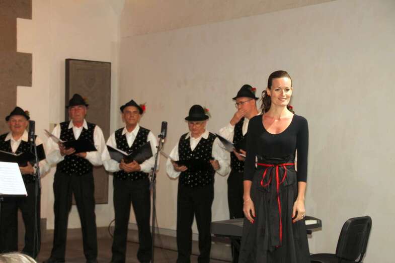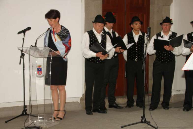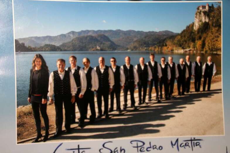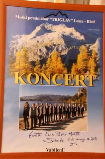 A continuación de estos actos tuvo lugar el extraordinario concierto del Coro Triglav Lesce Bled, que en palabras de la traductora dirigió al público asistente exponiendo la historia y creación del coro: “Venimos de la parte noroeste de Eslovenia que es extensamente conocida tanto por sus elevadas montañas, los Alpes Julianos y las Montañas Karavanke, como por sus lagos glaciares, Bled y Bohinj, y los preciosos ríos Sava y Soca. Entre nuestros países vecinos se encuentran Austria e Italia. Vivimos en las inmediaciones del Parque Nacional de Triglav. Nuestro Coro tiene el nombre de Triglav en honor a la montaña más alta de Eslovenia que es el símbolo de los eslovenos, y además, el Lago de Bled con su isla y la antigua iglesia de la Asunción de María y el Castillo, dominando en el fondo, están firmemente impresos en la memoria de la Nación como un icono de la belleza natural y orgullo nacional.