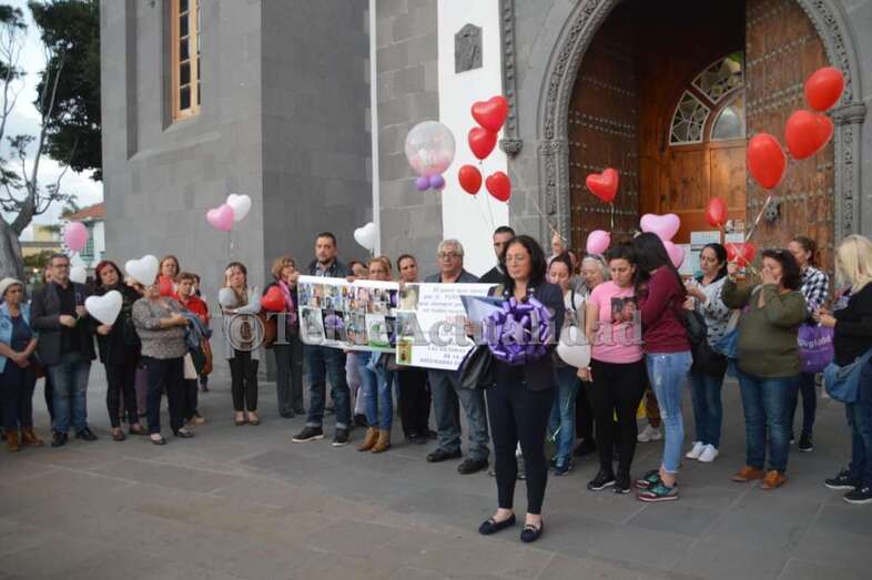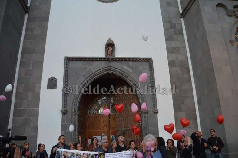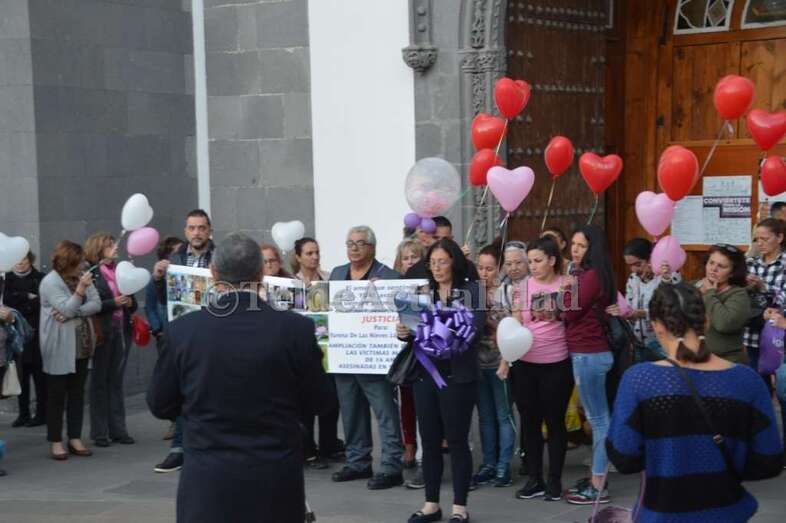 Telde.- Un minuto de silencio, la suelta de globos de tres colores y la lectura de un breve manifiesto marcaron esta noche, a las puertas de la Basílica de Telde, el emotivo acto organizado por la familia de Yurena López Henríquez en el primer aniversario de su asesinato a manos de su pareja.