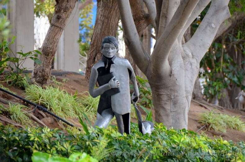 En un rincón del parque urbano de San Juan, a la sombra de los árboles y junto a los y juegos infantiles a las que cada día acuden decenas de niños, se levanta una escultura que para muchos puede pasar desapercibida pero que guarda una profunda carga simbólica. La figura de un niño que extiende su mano a otro y que encarna la lucha de Iqbal Masih contra la esclavitud infantil. Una causa que le costó la vida como mártir,pero que sirvió para salvar la de muchos otros a los que, como a él, las mafias arrebataron la niñez para explotarlos en fábricas realizando trabajos forzosos.