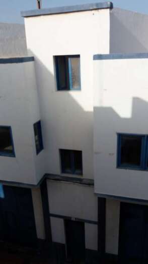 Las paredes, repletas de pintadas, no ayudan a mejorar el aspecto del barrio. Las rejas y puertas están destrozadas. Y muchas de las ventanas también han desaparecido.