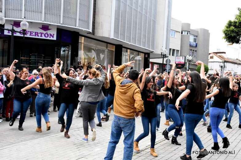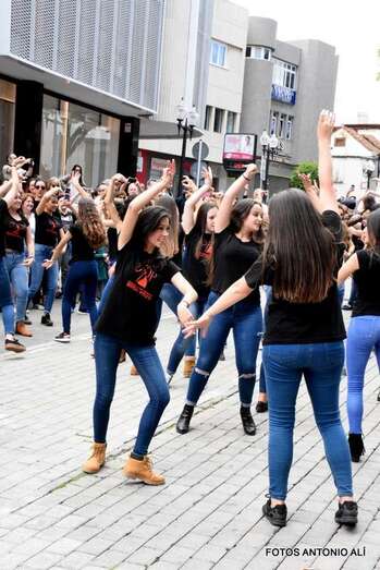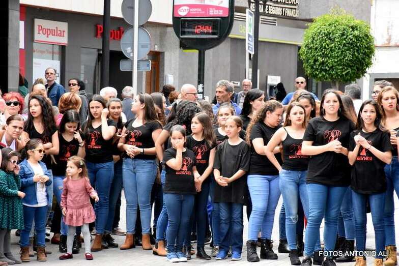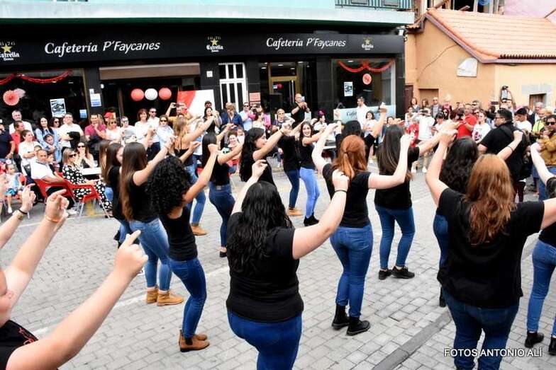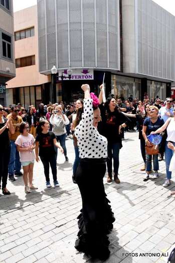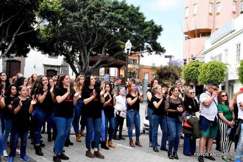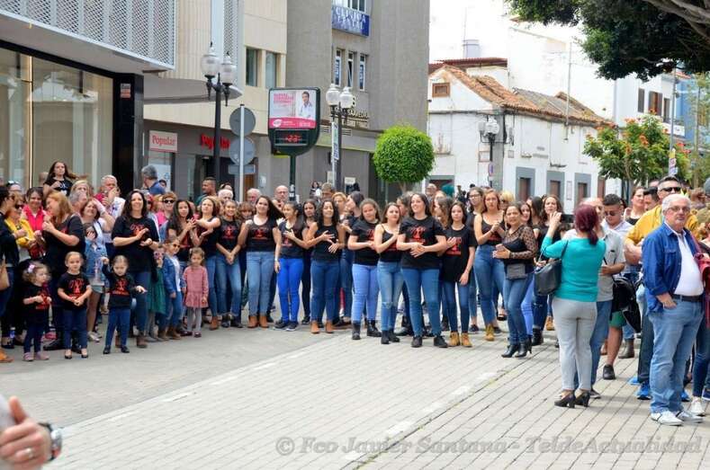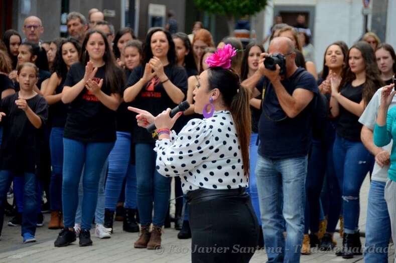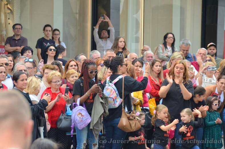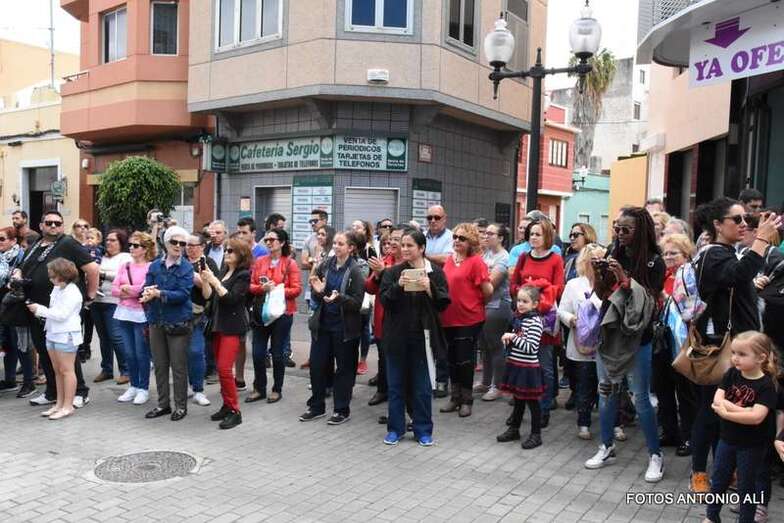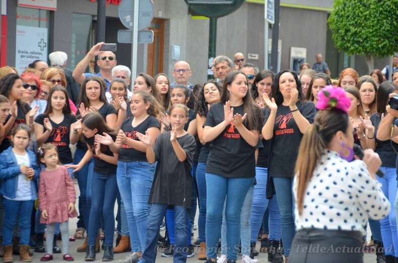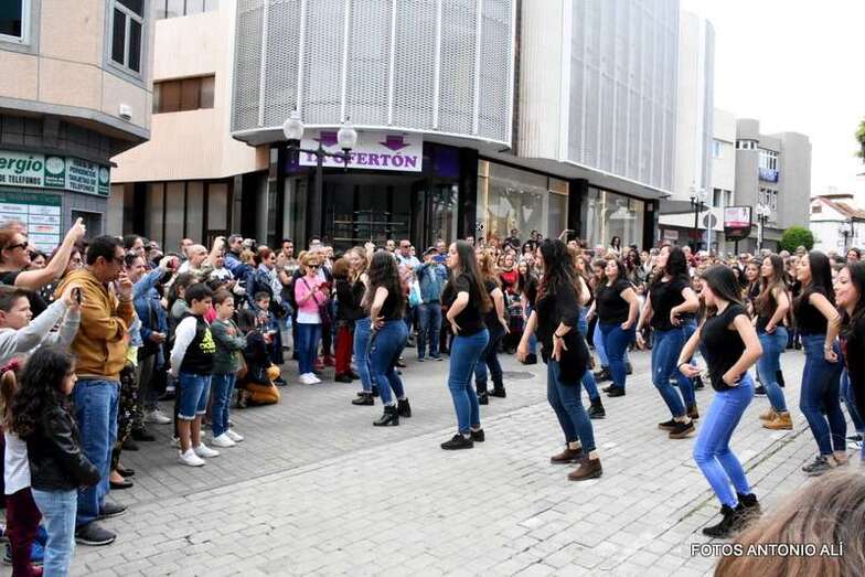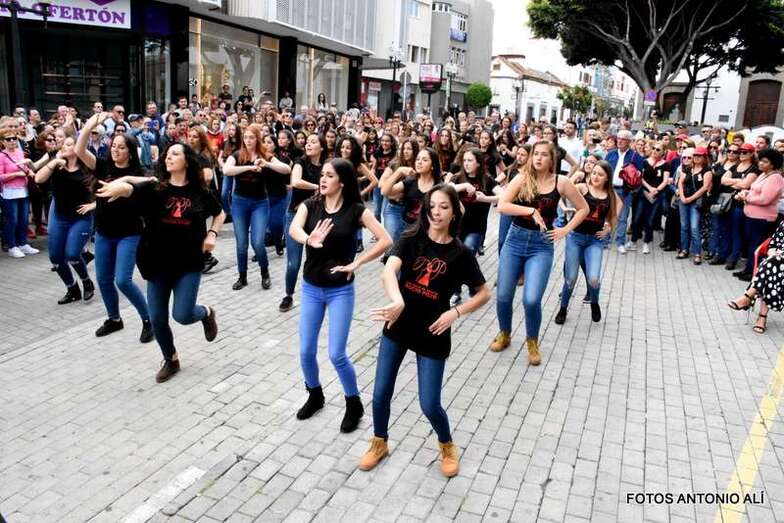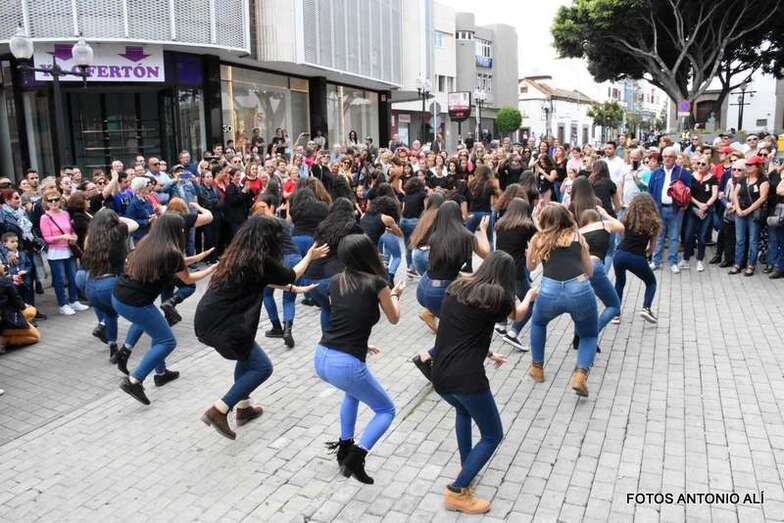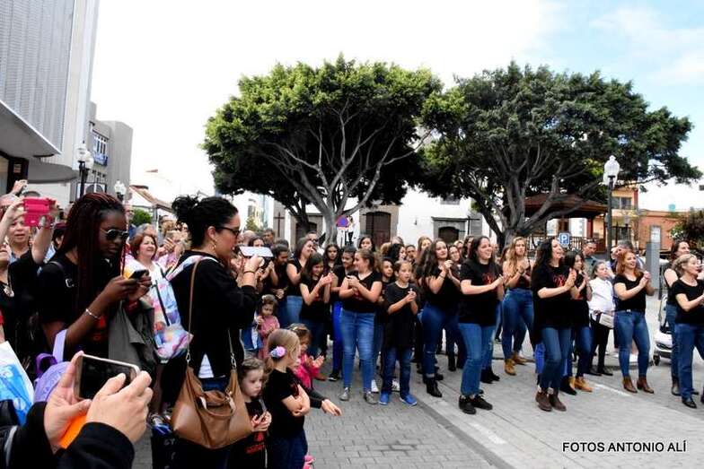 Entre tanto, un grupo de jóvenes alumnas de la Escuela de Danza Rocío Pozo de Telde entró en escena con un flashmob, un baile colectivo que no dejó indiferente a nadie y que terminó de desatar el entusiasmo y el júbilo entre los presentes.