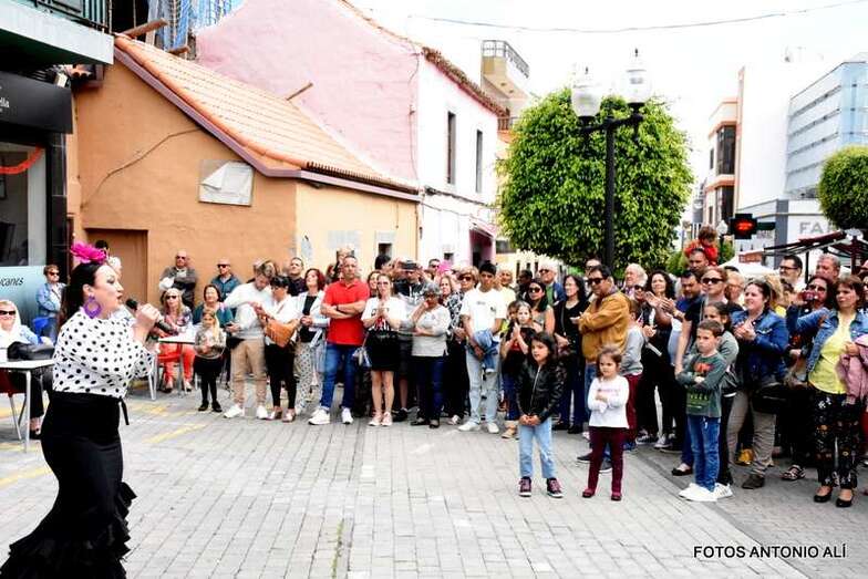 Telde.- El flamenco se convirtió este sábado en el gran protagonista en el casco de Telde. El barrio de Los Llanos vivió su particular Feria de Abril, un evento organizado por la Asociación de Empresarios y en el que no faltaron ni el baile ni el cante, los trajes de volantes y lunares y tampoco los pequeños placeres de la gastronomía andaluza. Decenas de personas se acercaron hasta la Zona Comercial Abierta para disfrutar de la fiesta.