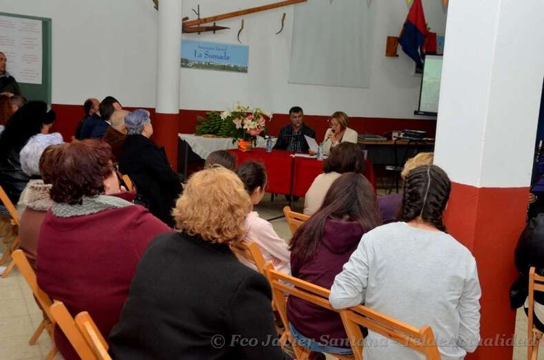 En el barrio jinamero de Lomo Blanco, la concejala de Cultura, Educación, Sanidad y Mercado, Marta Hernández (NC) fue la encargada de anunciar las fiestas de la Cruz en el local social del colectivo La Somada, que registró una gran asistencia de vecinos y autoridades. Después hubo un concierto de la Banda Municipal de Música.