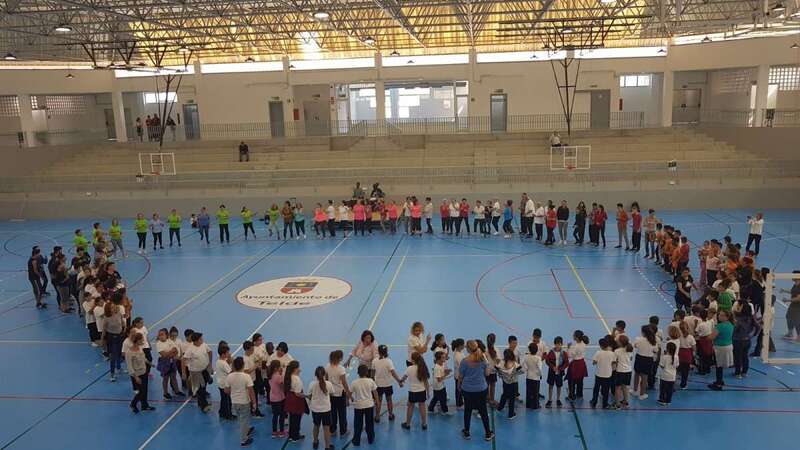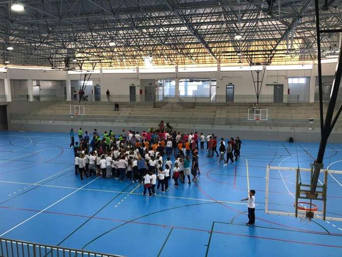 Promovido por la Coordinadora de Recursos Jinámar-Marzagán, con la colaboración de los Ayuntamientos de Telde y Las Palmas Gran Canaria, en el polideportivo de Jinámar recién remozado se dieron cita un grupo de 35 mayores, 20 personas vinculadas al deporte y 145 escolares de centros educativos de Primaria y Secundaria de la zona como el IES Lila, CEO Omayra Sánchez y los CEIP Europa - Néstor Álamo e Hilda Zudán.