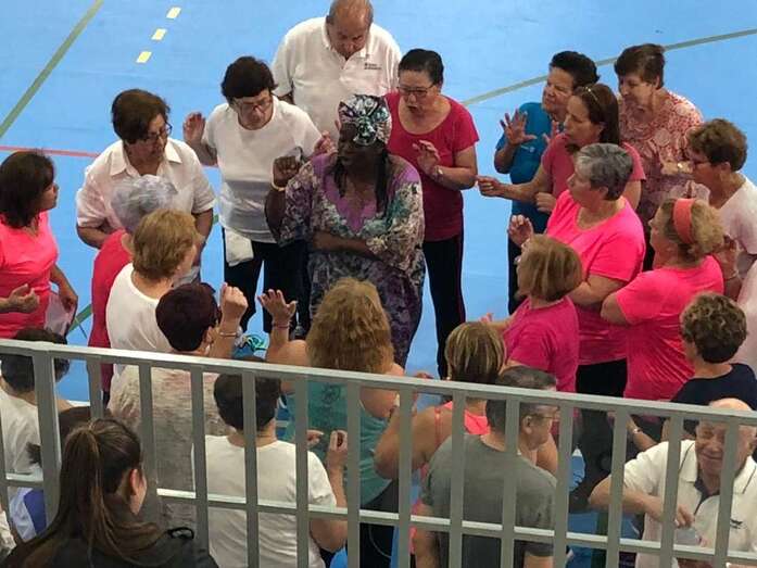 Telde.- El Pabellón Juan Carlos Hernández se llenó de vida este miércoles en un encuentro comunitario por la salud integral en el que personas de distintas edades se movieron juntos al ritmo de música africana y zumba, ejercicios de relajación y juegos y dinámicas que fomentan la cooperación, la alegría y la unidad.