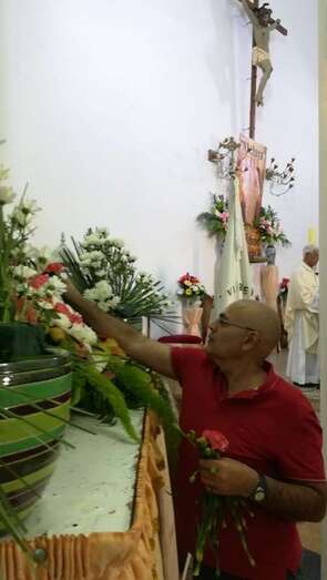 Como preámbulo de las fiestas, este martes, a las 19.00 horas, tuvo lugar en el templo parroquial la ofrenda flora ante la imagen de la patrona.