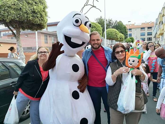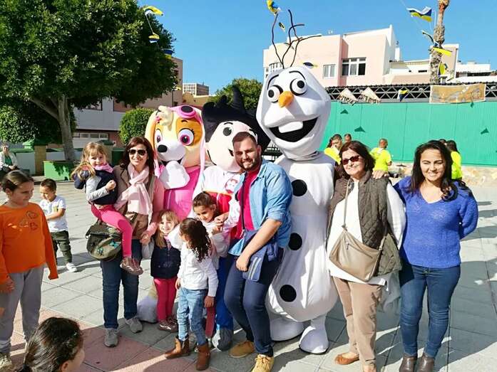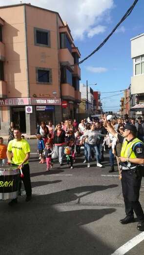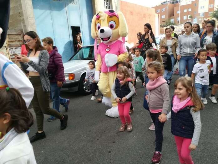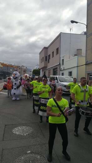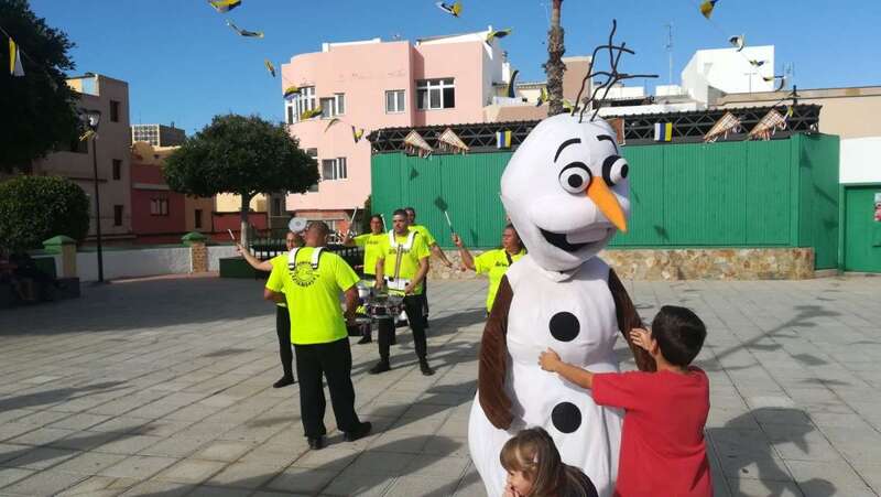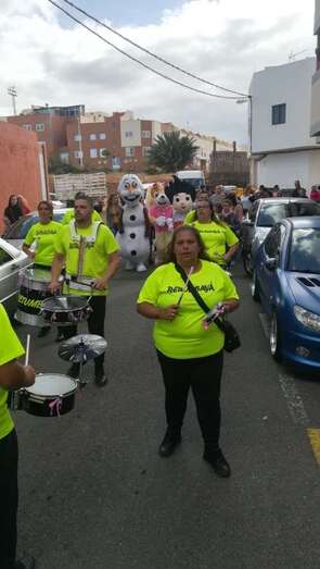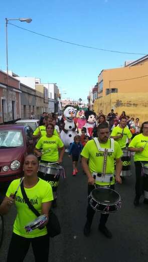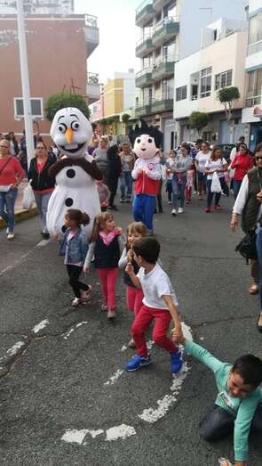 A las 17.00 horas los más pequeños tomaron la calle para estar al lado de los personajes de Disney que participaban en el ruidoso desfile animado con su trepidante música por la batucada Retumbayá, que hizo un recorrido por las vías principales de El Calero par finalizar en la plaza pública, próxima al local ciudadano donde a las 20.30 horas le correspondía el protagonismo a la activista social Mari Carmen Ruiz Artiles.