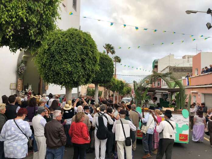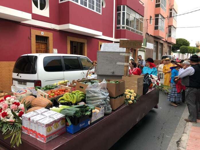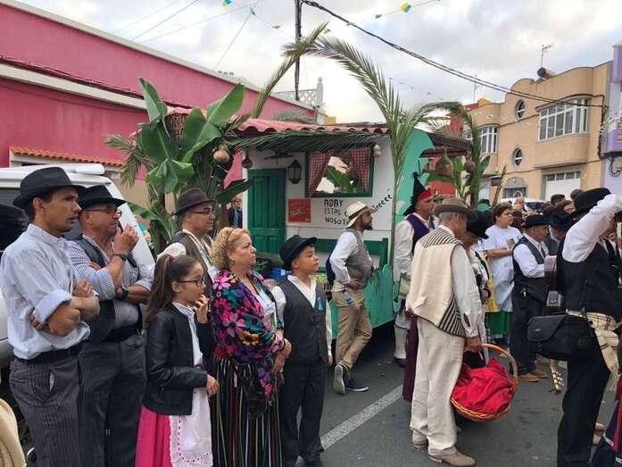Telde.- Los romeros ocuparon este sábado por la tarde-noche las calles de El Calero, en un animado desfile popular con carretas y parrandas folclóricas que finalizó con la tradicional ofrenda ante el trono de la patrona.