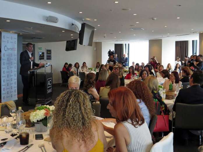 La agrupación de mujeres Charter 100 Gran Canaria recibió al presidente del Gobierno de Canarias, Fernando Clavijo, quien expuso sus políticas de gobierno en la asamblea de este mes del lobby grancanario, con especial atención a las medidas destinadas a fomentar la consolidación de las mujeres en las áreas económicas del Archipiélago.