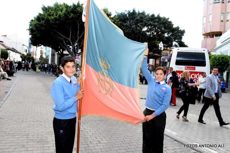 Aún así, el desfile religioso del trono de María Auxiliadora, que lucía una ornamental floral integrada por 1.000 piezas de anastasia, igual número de proteas, 500 hojas de crotos y 200 de bromelias, congregó a cientos de personas que estuvieron al lado de la patrona de la comunidad salesiana durante el recorrido de algo más de una hora de duración que va desde la Parroquia de San Gregorio hasta el colegio popularmente conocido como de Las Monjas.