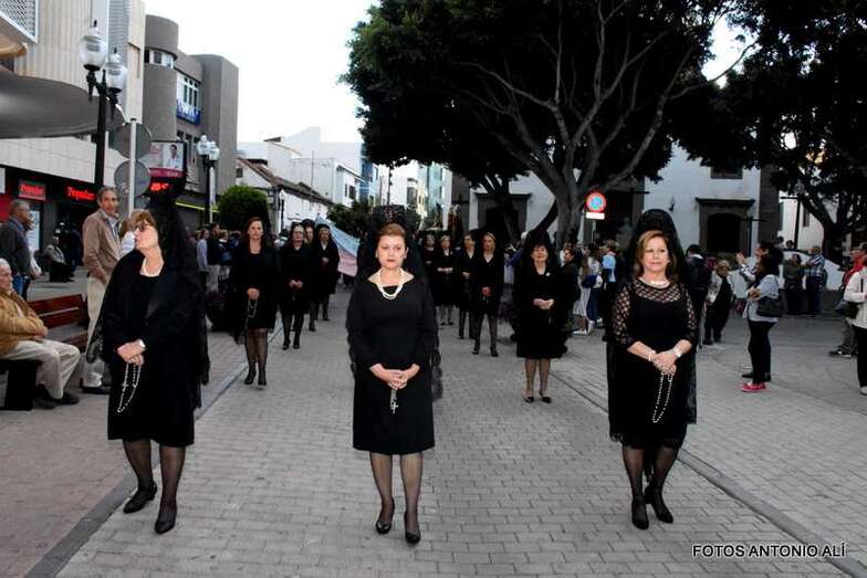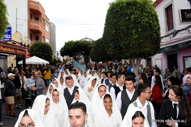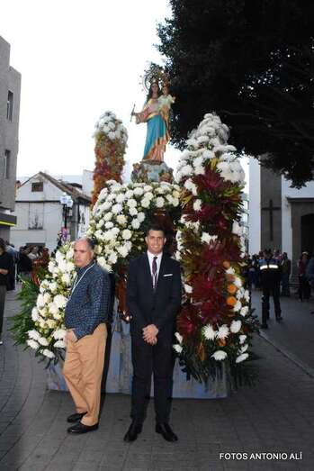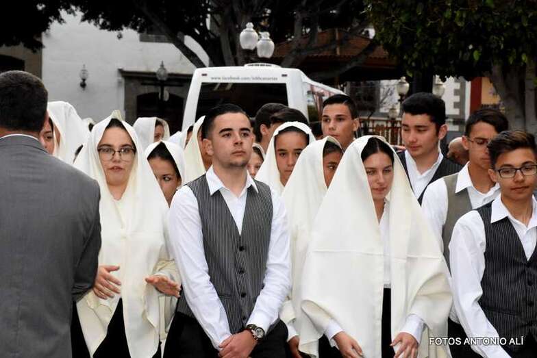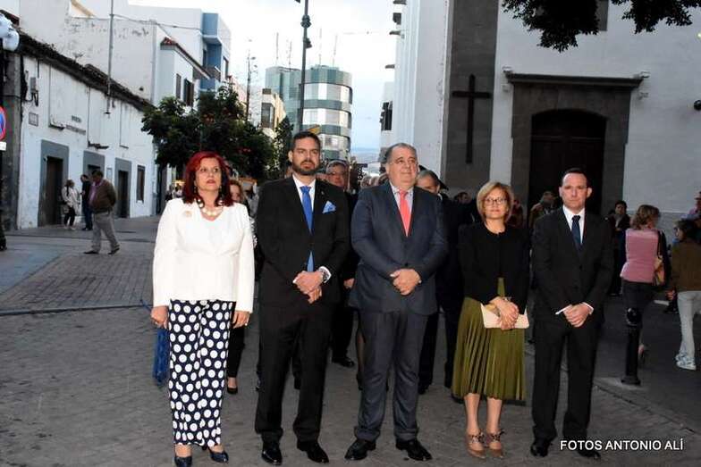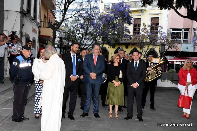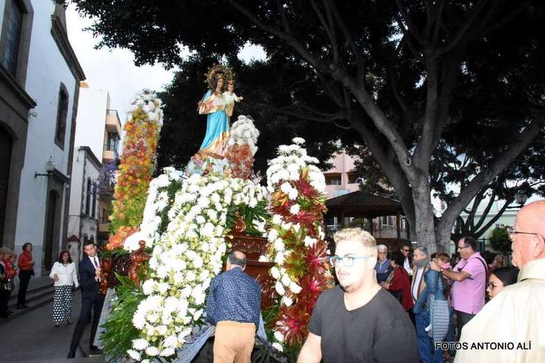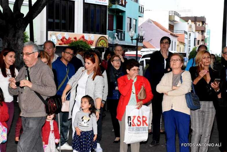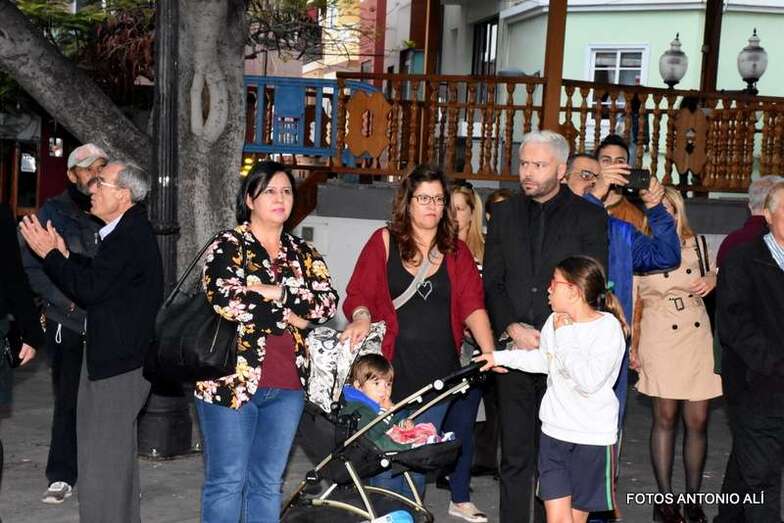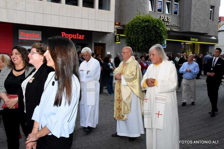 El cortejo religioso arrancó en la misma plaza pública, tras finalizar la misa que oficiaron los sacerdotes Luis Marrero y Fernando Báez en el abarrotado templo neoclásico de Los Llanos.