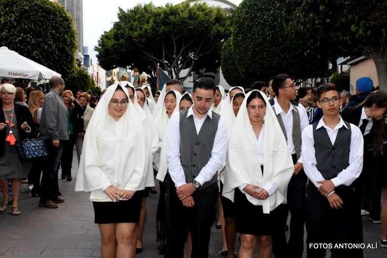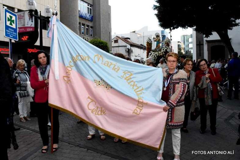 Telde.- Una fina lluvia acompañó y deslució algo esta noche la procesión que cada año celebra llegado el 24 de mayo la comunidad salesiana de Telde por las calles del núcleo comercial de Los Llanos.