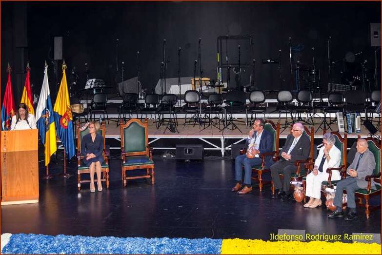 Telde.- Telde distinguió este martes, en vísperas del Día de Canarias, a los folcloristas Perico Lino, Elfidio Alonso y Faustino Curbelo y a la activista vecinal, Ángela Santana (Pimpinela), en una ceremonia institucional por el 30 de mayo que tuvo lugar esta noche en el Teatro Municipal presidida por la alcaldesa Carmen Hernández y a la que asistió el vicepresidente del Gobierno de Canarias, Pablo Rodríguez.