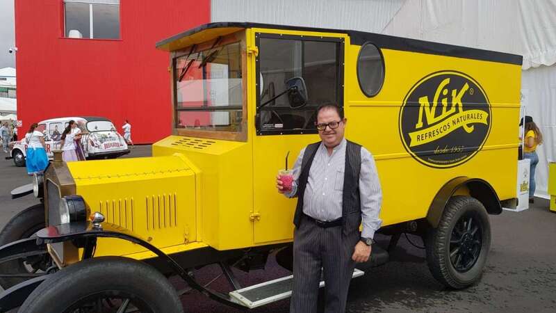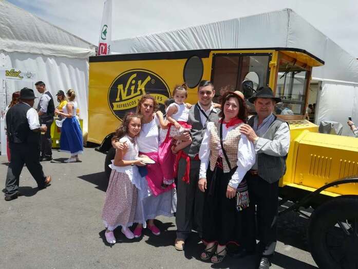 Asistentes a la fiesta posan delante de un viejo camión de reparto de refrescos Nik (Foto TA) Asistentes a la fiesta posan delante de un viejo camión de reparto de refrescos Nik (Foto TA)