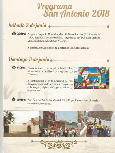 Telde.- Del 2 al 17 de junio, el núcleo poblacional teldense de San Antonio rendirá honores a su patrono el santo de Padua, con un programa festivo que ha sido confeccionado por la AV La Taborda.