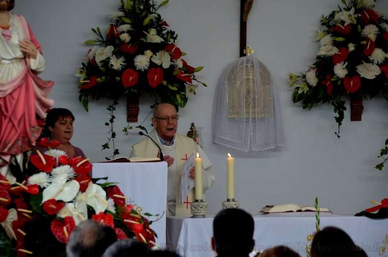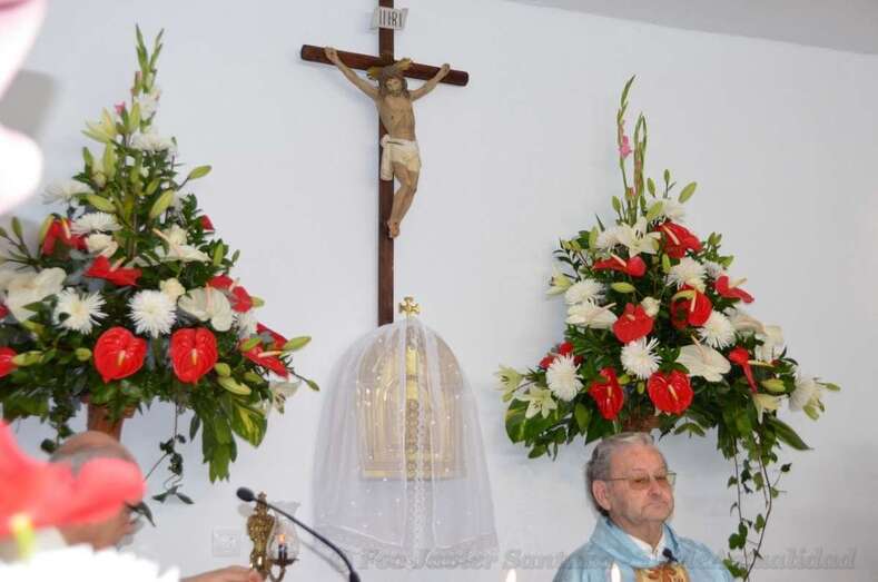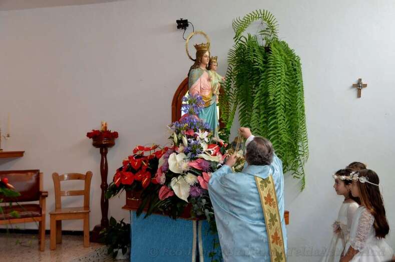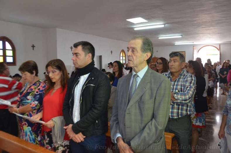 A las 12 del mediodía comenzó la eucaristía en el pequeño templo de La Gavia, abarrotado de fieles, oficiada por los sacerdotes Francisco Fuentes Segura, de la Comunidad Salesianas de Las Palmas, y Eugenio Peñate Suárez, párroco del lugar.