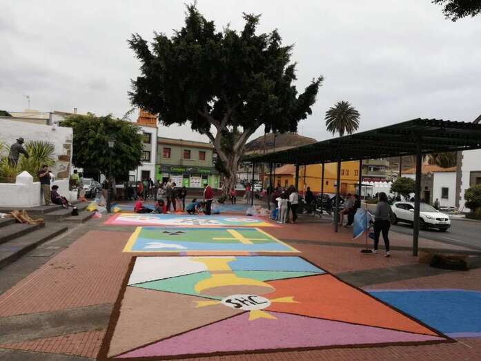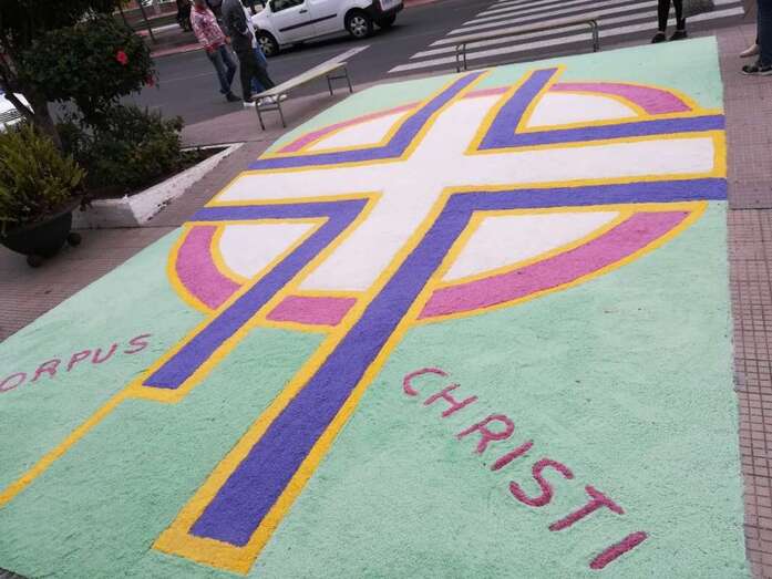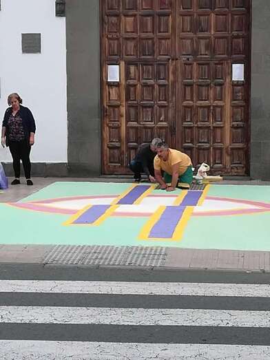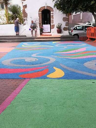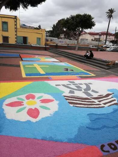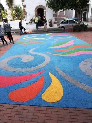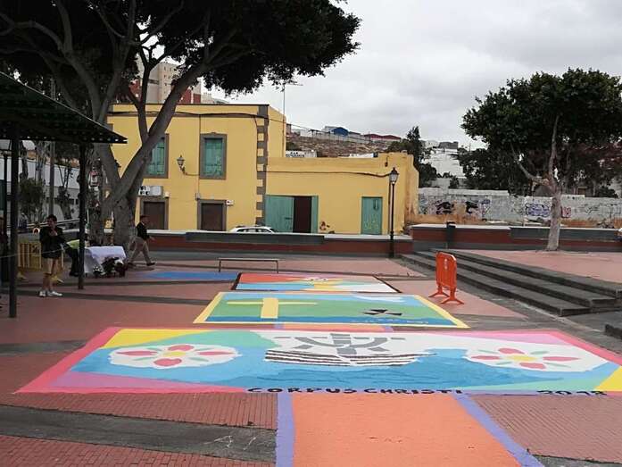 Telde.- Las tradicionales alfombras por el Día del Corpus volvieron este domingo al casco antiguo de Jinámar, donde colectivos de la zona llevan desde 2014 preservando la confección de tapices en esta festividad religiosa.