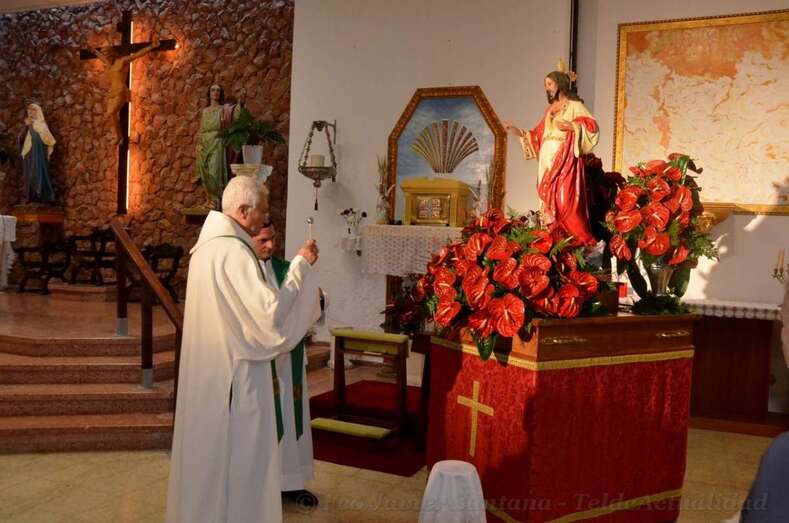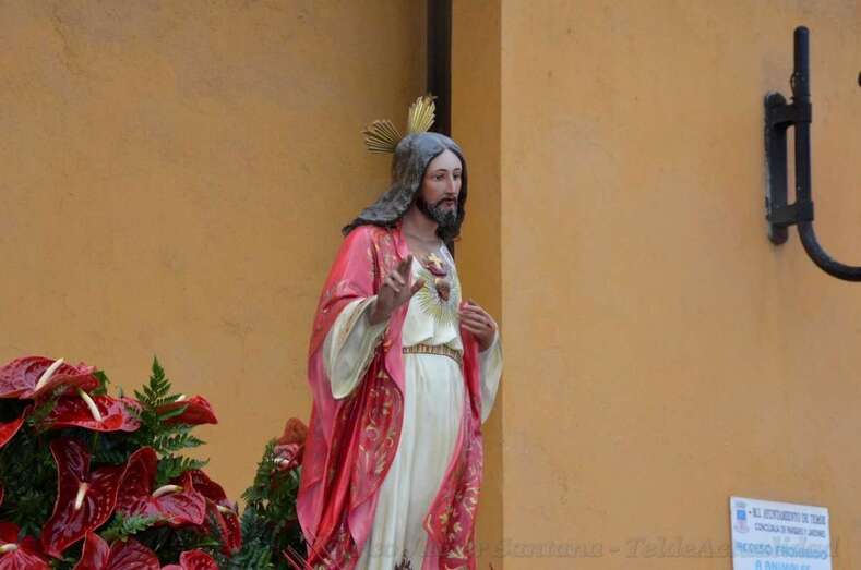 Telde.- La imagen del Sagrado Corazón de Jesús hizo historia este sábado en La Garita al ser la primera vez que el trono hace un largo recorrido por siete calles de este núcleo costero de Telde.