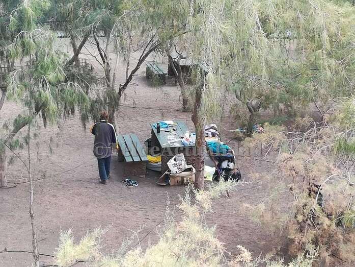 Sin embargo, hace unas jornadas volvió a instalarse de nuevo en este merendero, donde suele dormir debajo de una mesa de madera con sus pertenencias esparciadas a su alrededores. Allí mismo, siempre según los vecinos, "hace sus necesidades”.