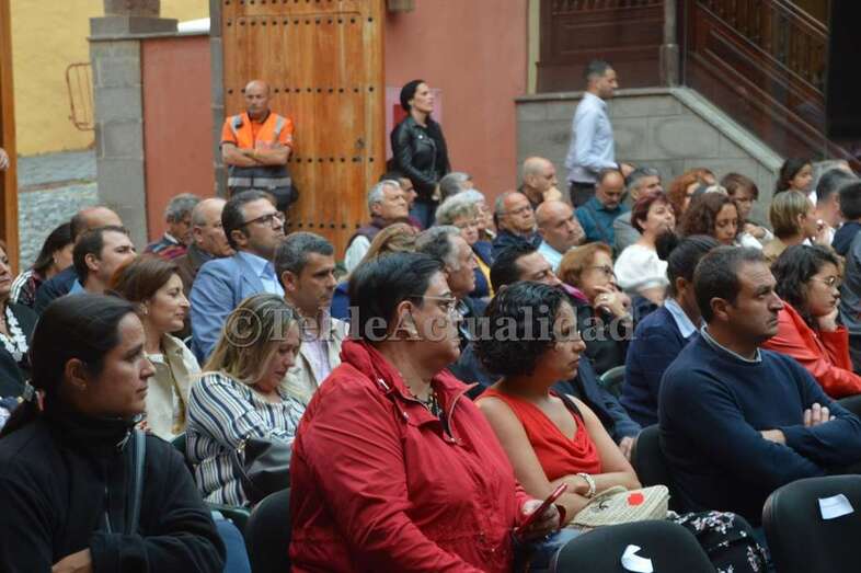 El acto que da el pistoletazo de salida a las fiestas de San Juan 2018 comenzó pasadas las 20.30 horas en el patio de histórica mansión de la calle de Conde de la Vega Grande (San Juan), que registró para la ocasión una nutrida asistencia de vecinos, amigos y familiares del pregonero, así como de una amplia representación de concejales del Gobierno y de la Oposición de la Corporación municipal. También se hallaban presentes la consejera insular Ruth León y el director general de Infraestructuras Turísticas, Héctor Suárez.