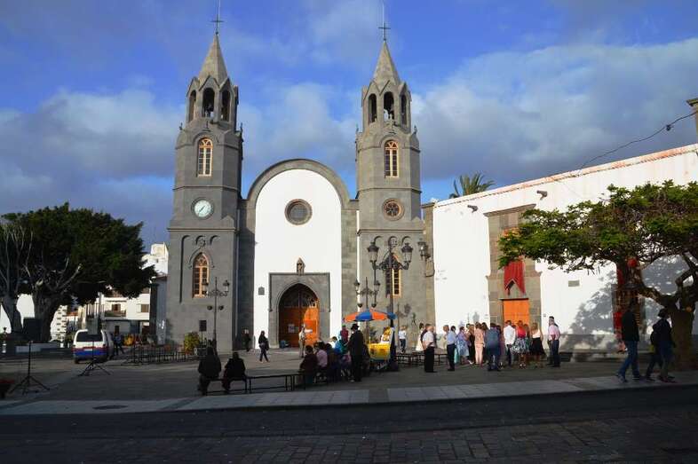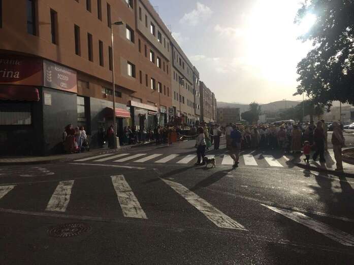 Una vez culminando este oficio religioso, la imagen del santo atravesaría la cancela de templo matriz de Telde para recibir a los romeros que llegaron con varios cientos de kilos de alimentos que luego Cáritas se encargará de repartir entre asociaciones y familias desfavorecidas.