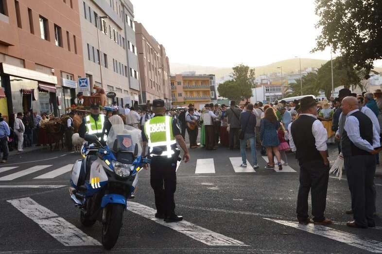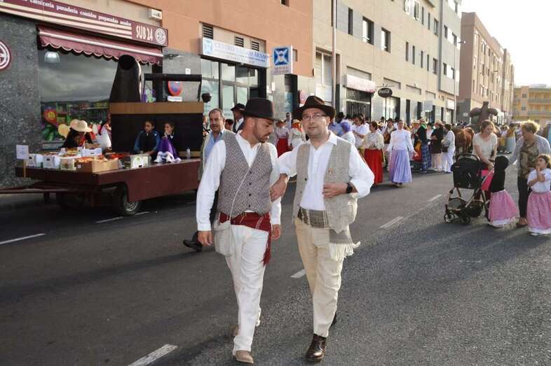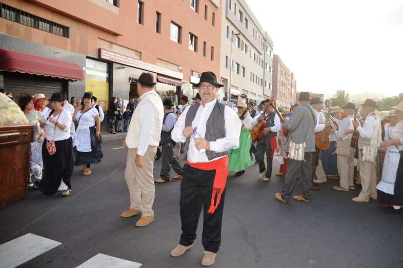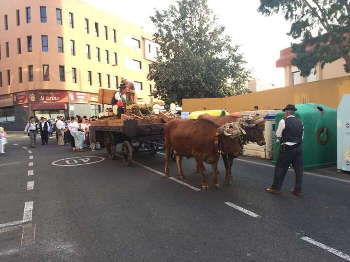 Telde.- El barrio sanjuanero disfrutó esta tarde-noche de la romería ofrenda a su patrón. Un desfile popular que, con ocho carretas y siete grupos folclóricos, partió desde el sector de Arnao, de la calle de Licenciado Gilberto Monzón Mayor, para acabar a los pies de la Basílica, en donde esperaba la imagen de San Juan Bautista.