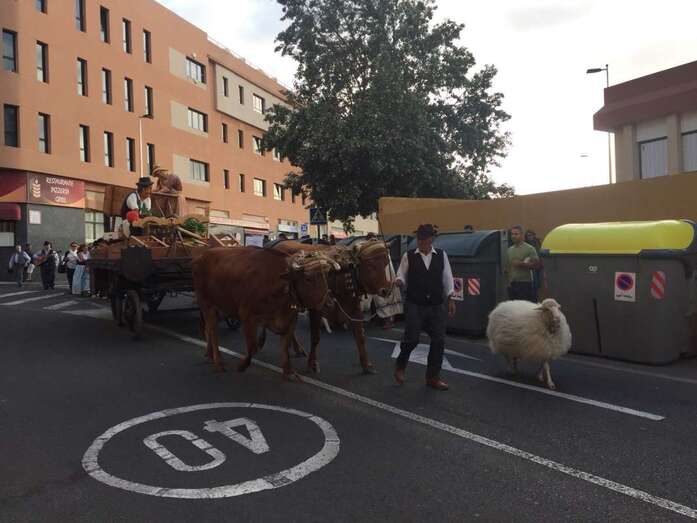 El punto de partida fue la calle Licenciado Gilberto Monzón Mayor. Desde allí, la carretas, todas ellas tiradas por bestias, bajaron por la calle Antonio Rumeu de Armas hasta la rotonda de El Chorrillo, en donde ya tomaron la calle León y Castillo que les llevaría hasta el corazón del casco histórico.