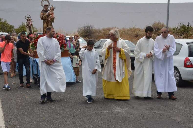 Telde.- El pequeño pago de Arenales rindió honores este domingo su patrono, San Antonio de Padua, con una misa oficiada por el párroco Fernando Báez y la posterior procesión religiosa.