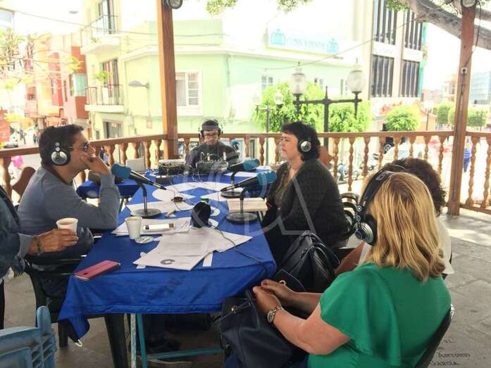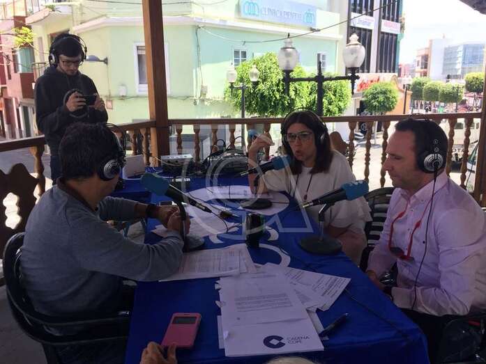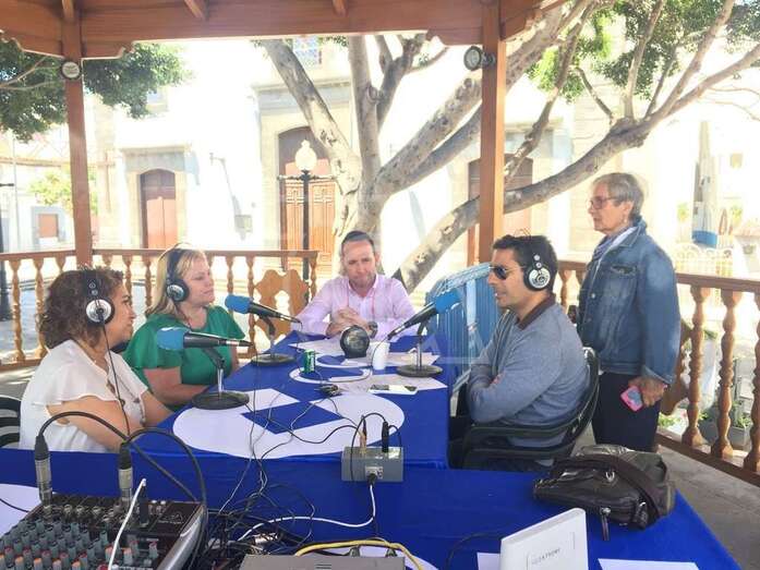 La revista radiofónica analizó durante dos horas, desde la unidad móvil instalada en el templete del Kiosco de la Música de la plaza de Los Llanos, la actualidad económica, social y política de Telde, con especial referencia a la situación del área comercial de la zona.