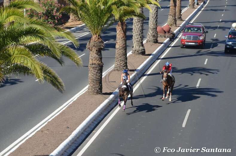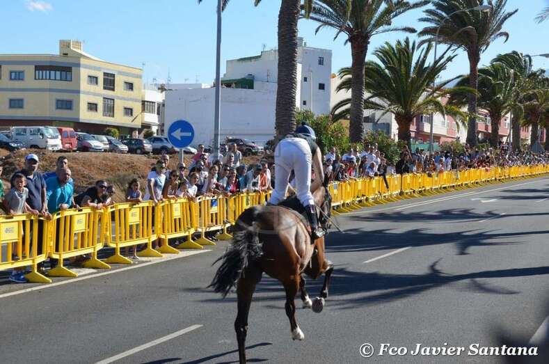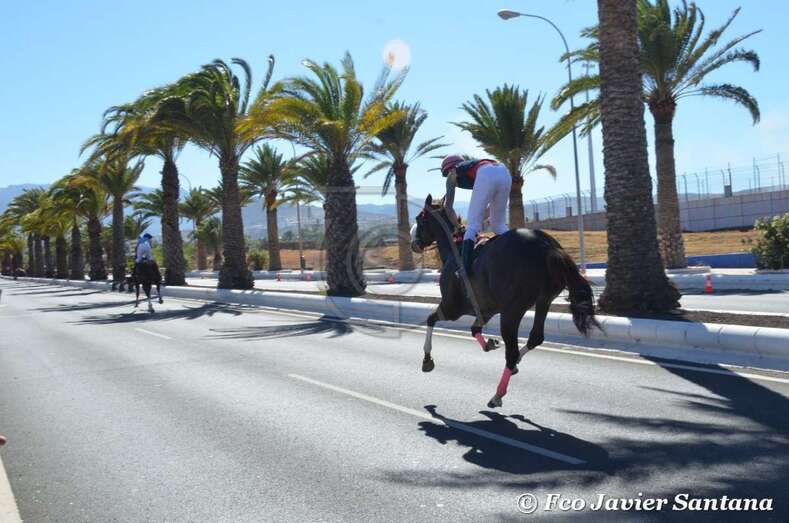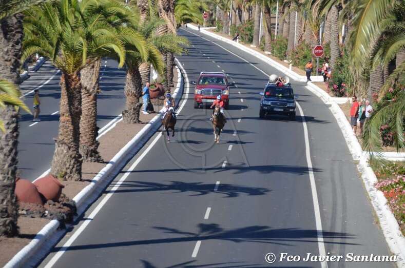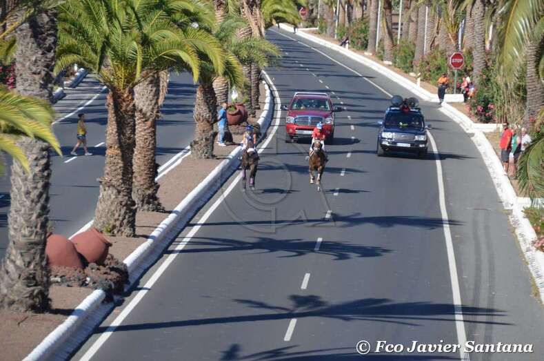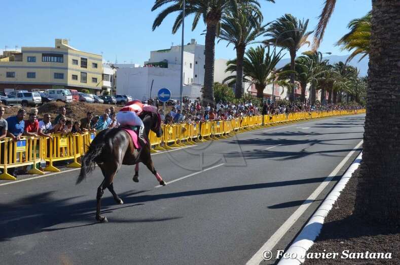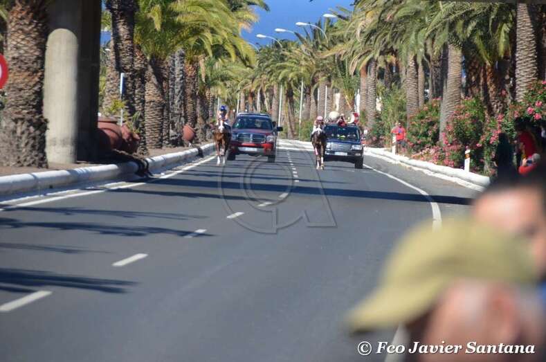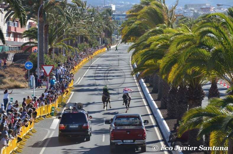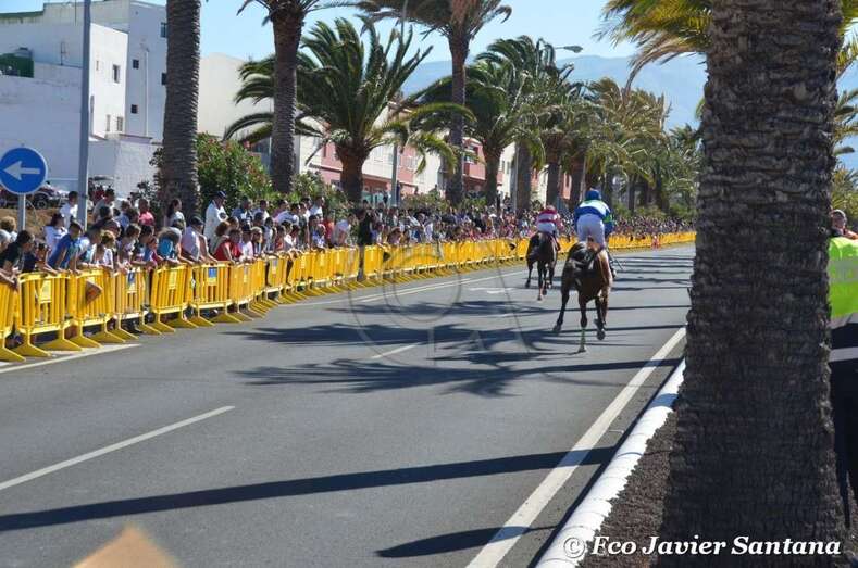 A partir de las 17.30 horas compitieron los jinetes de cuadras de Gran Canaria (Telde, Carrizal, San Mateo y Tamaraceite), La Palma y Tenerife en las 10 pruebas de dos caballos cada uno y una de tres, que se desarrollaron entre fuertes medidas de seguridad en el improvisado hipódromo urbano de 1,4 kilómetros de longitud sobre el asfalto de la Avenida del Cabildo comprendido entre El Hornillo y Narea. Las cuadras de Telde y San Mateo se impusieron en 10 de las 11 carreras. Las de esta ciudad dominaron en cinco de ellas y las de la locadidad del centro de la isla lo hicieron en igual número.