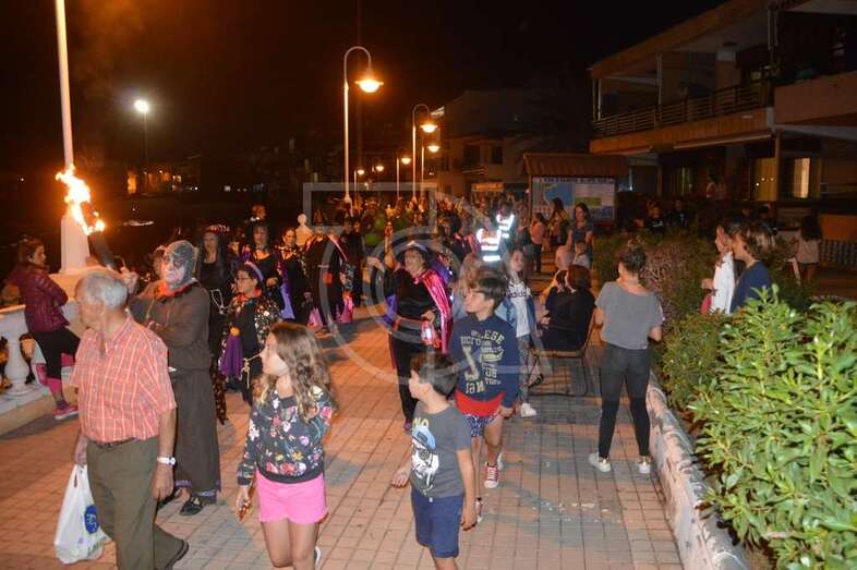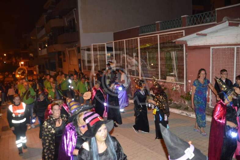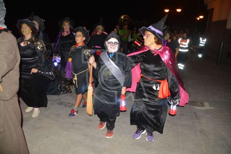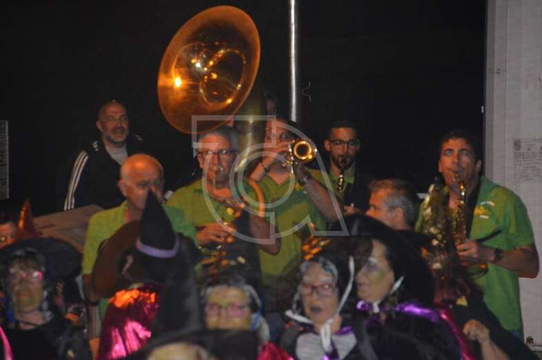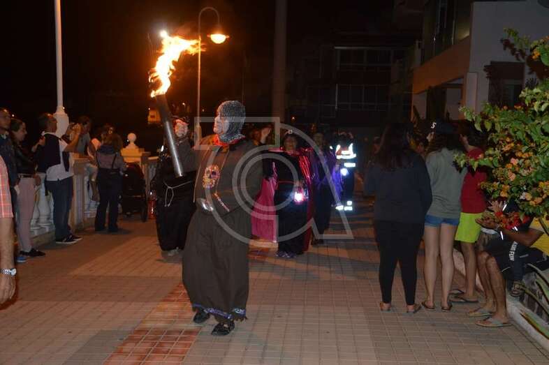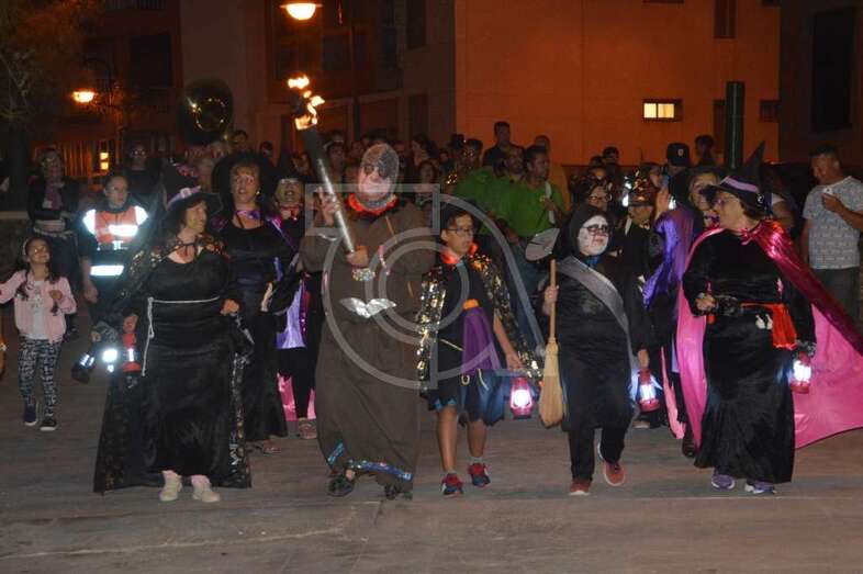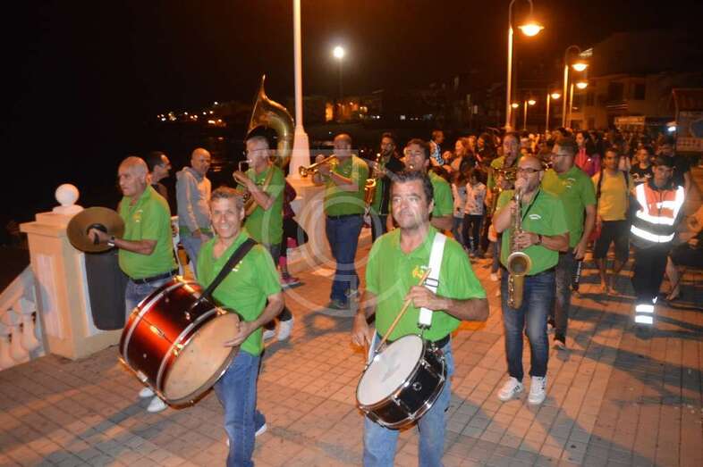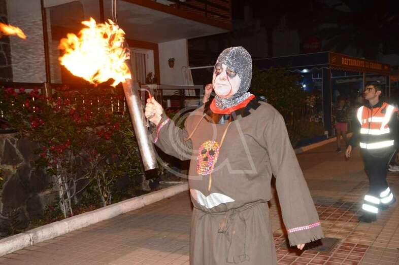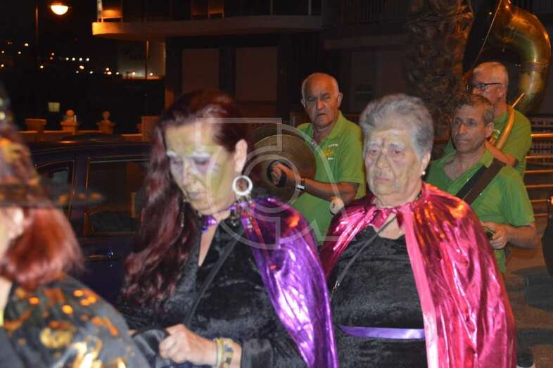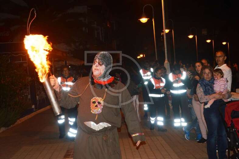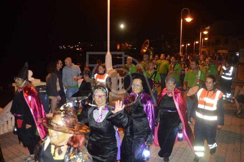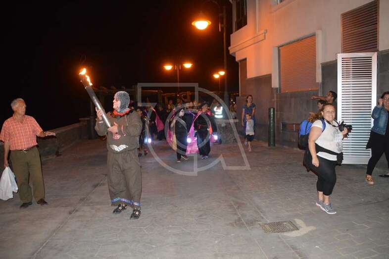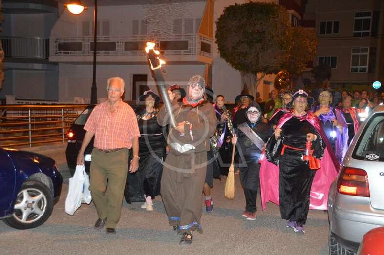 Con punto de partida en la avenida marítima de Salinetas, el desfile de hechiceras con candiles y mechones en llama se puso en marcha pasadas las 22.00 horas con el acompañamiento de la charanga Vitamina Band enfilando sus pasos por varias vías de Clavellinas en dirección hacia Melenara, donde a la altura de la calle de Luis Millares la comitiva se completó, como en ediciones anteriores, con un trono móvil coronado por un ente diabólico y portado por dos hechiceros y la música atronadora de la Batucada Caribe.