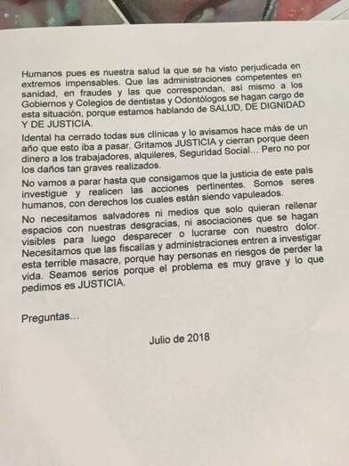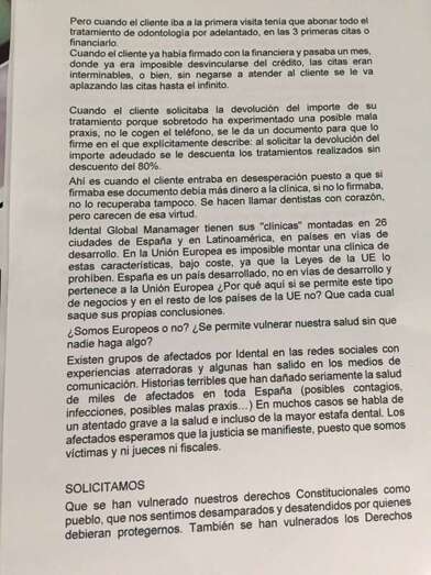 Entre sus reproches, se cuestionan cómo las autoridades españolas permitieron operar a una firma como iDental, catalogada como low cost, pese a que en la Unión Europea están prohibidas estas clínicas de bajo coste.