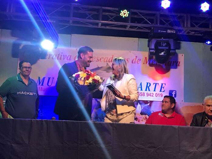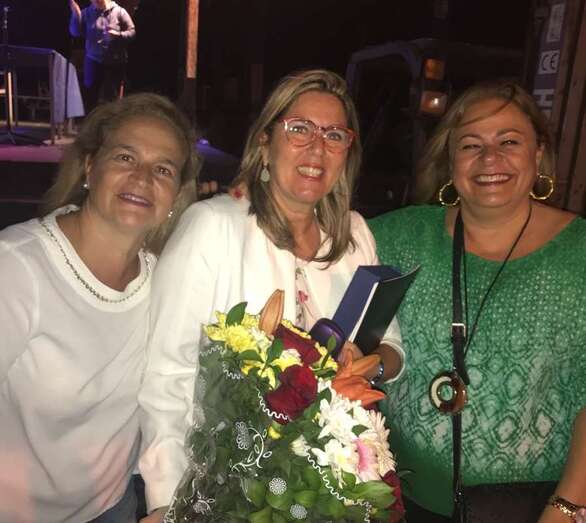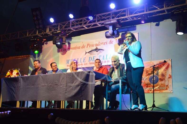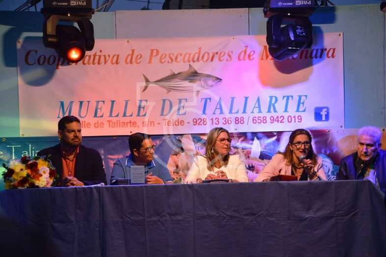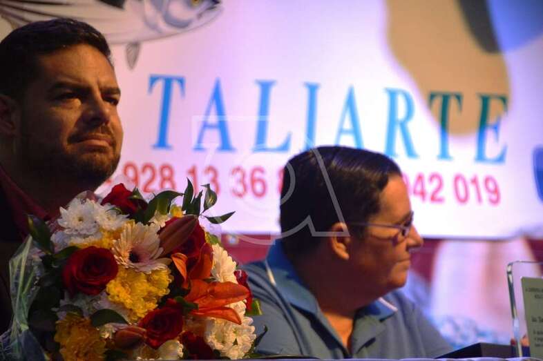 La pregonera recibió un placa del patronato organizador de las fiestas, que preside Carmen Rosa Santana, y fue muy aplaudida por el público que se dio cita en el muelle deportivo-pesquero de Taliarte, entre los que se encontraban concejales de la Corporación local, amigos y familiares de González Calderín.