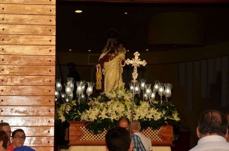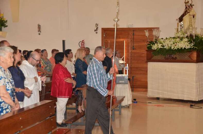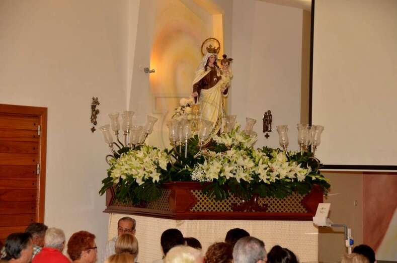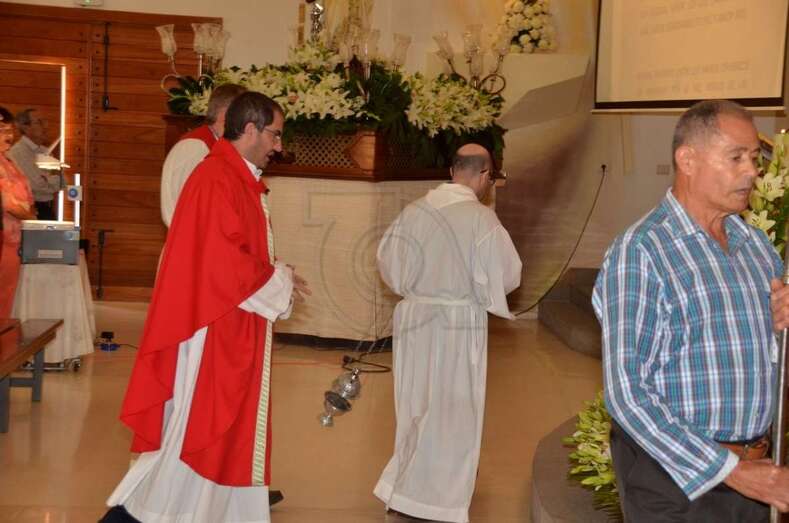 Tras la eucaristía celebrada en el templo, el desfile de las imágenes de Santiago Apóstol y la Virgen del Carmen tomó las vías principales de Lomo Cementerio con el acompañamiento musical de la Banda Municipal y de feligreses y autoridades públicas.