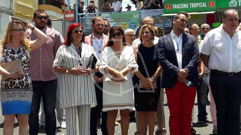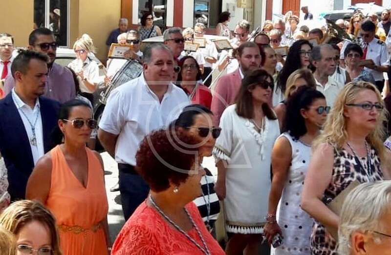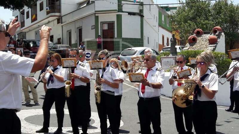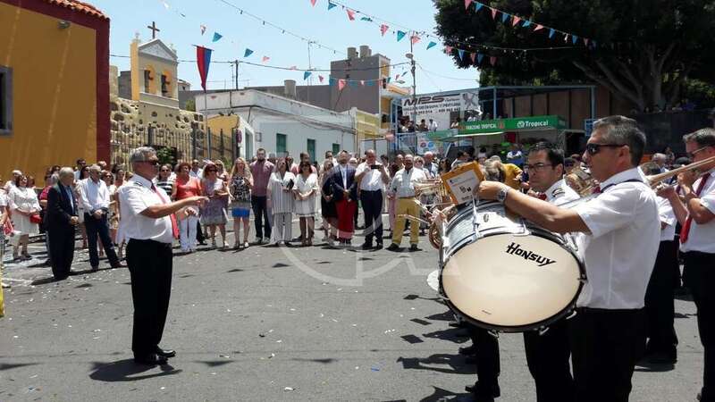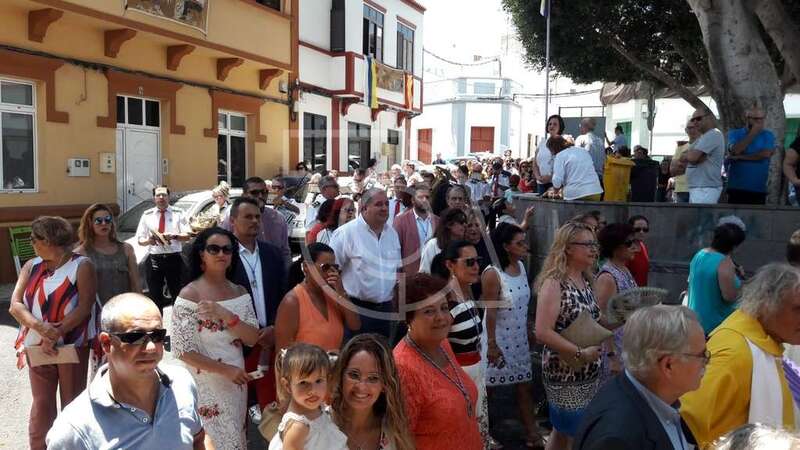 A su término, la procesión cívico-religiosa tomó el protagonismo con el paseo del trono de Nuestra Señora de las Nieves por el recorrido de costumbre y con el acompañamiento de la Banda Municipal de Telde, fieles y una comitiva de autoridades públicas, encabezada por la alcaldesa de la ciudad.