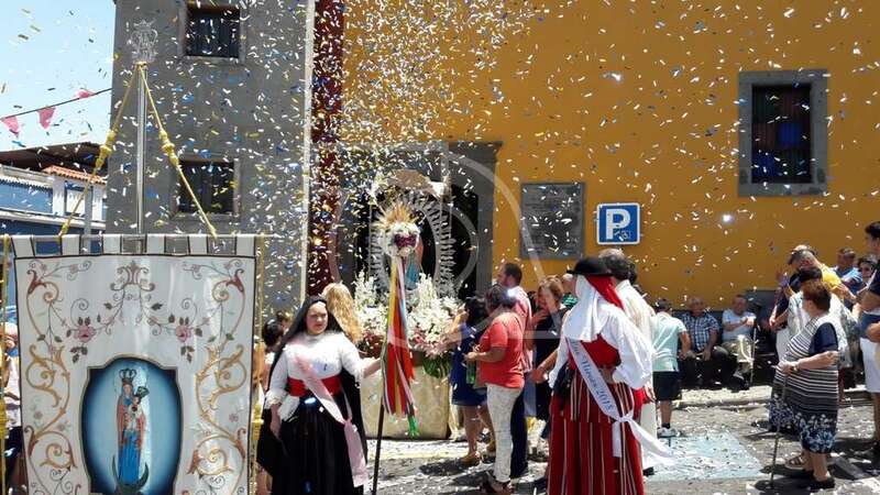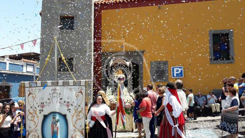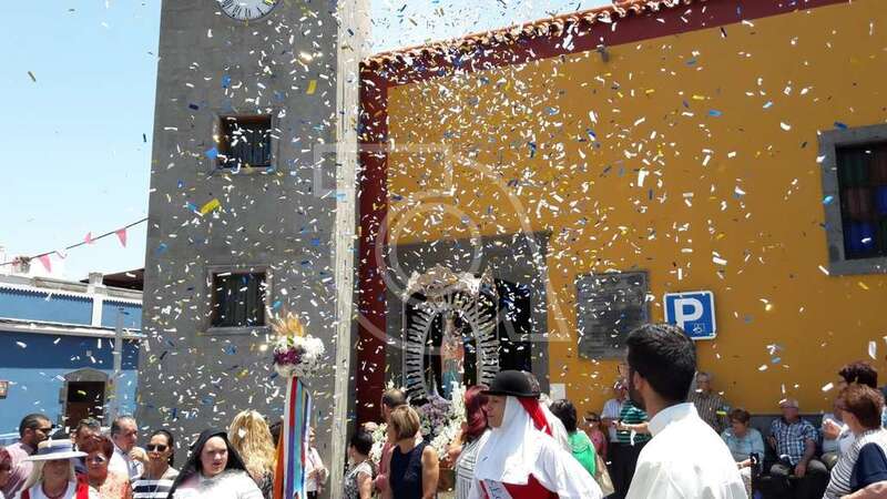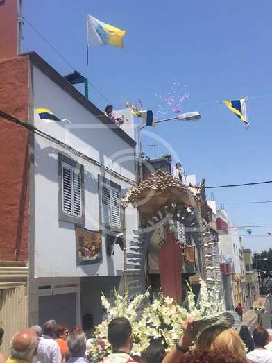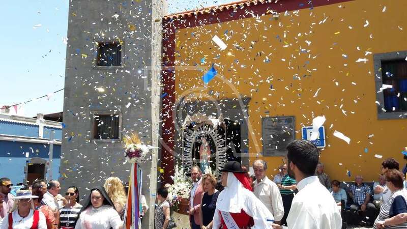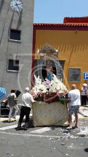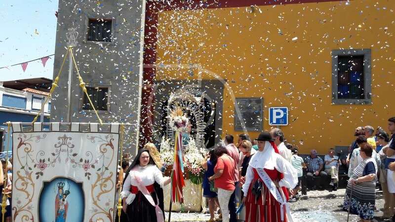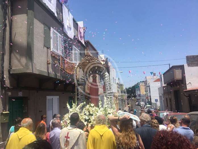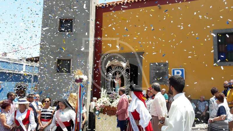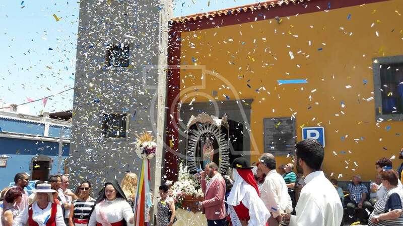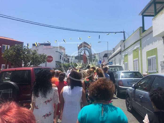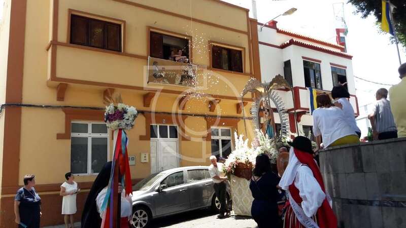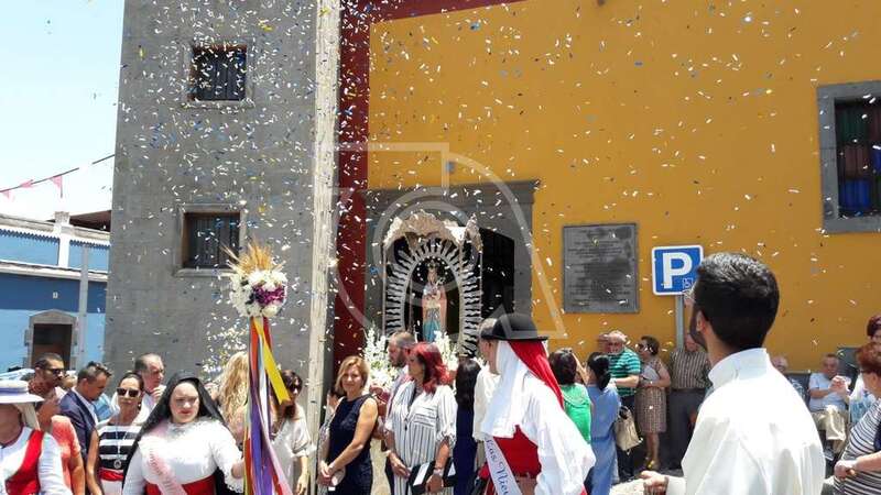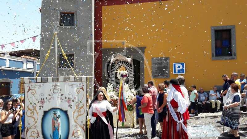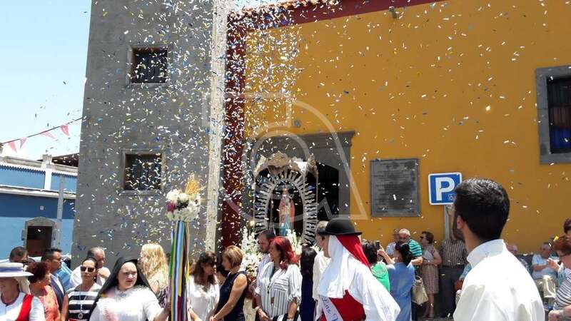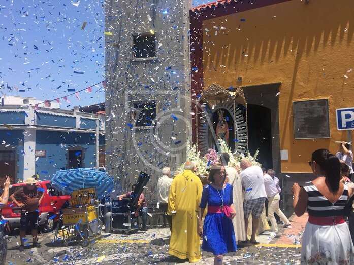 La salida del trono del templo de Lomo Magullo fue saludado por el lanzamiento de varios cañones de confeti. La Banda Municipal interpretó al final de la procesión el nuevo himno a la Virgen de las Nieves, obra del cronista oficial de Teror, Jose Luis Yánez, que fue estrenado días atrás en el templo.