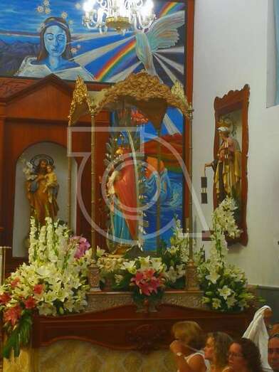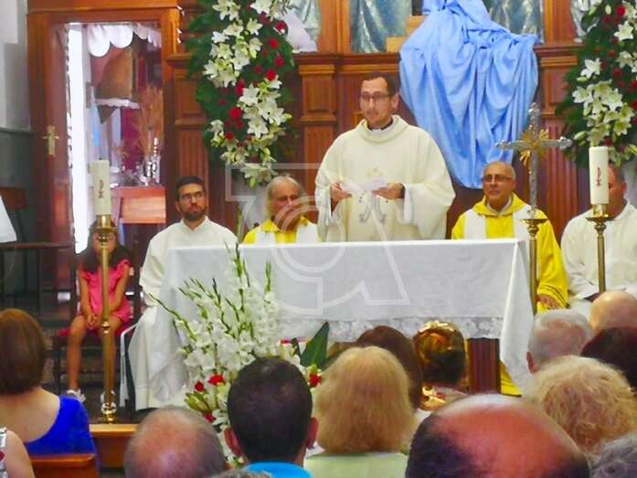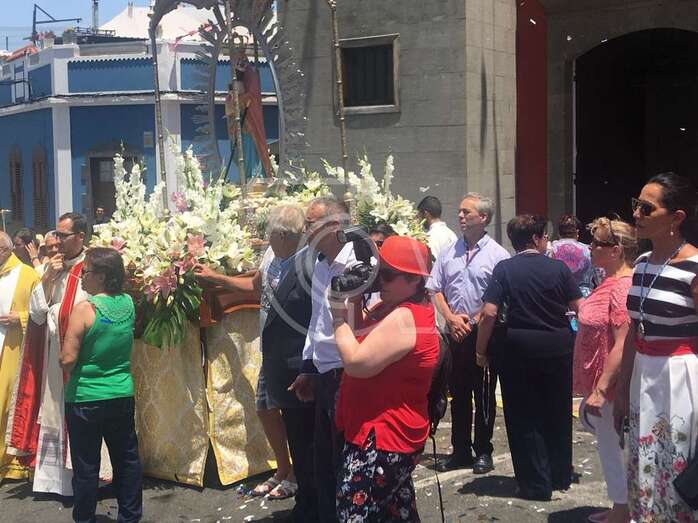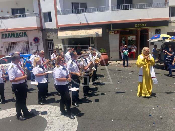 Los oficios religiosos comenzaron a las 12 del mediodía con una eucaristía presidida por el reverendo Aday Josué García Jiménez, párroco de Balos y Casa Pastores y vicario parroquial de San Rafael Arcángel. Estuvo amenizada por la Coral de El Calero.