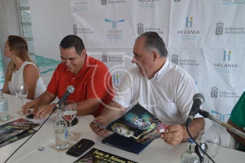 El programa de los festejos más importantes del verano en la costa de Telde y uno de los más relevantes de Gran Canaria, que suelen congregar a miles de personas en la noche del espectáculo pirotécnico marítimo y aéreo, que este año cumple su décimoquinta edición, se presentó hace unos minutos en un acto que tuvo como marco el restaurante Bistro Escuela Melenara, de la red pública de Hoteles Escuela de Canaria (Hecansa), con la presencia del alcalde en funciones y concejal de Festejos, Juan Martel; el presidente de Meclasa, Leonardo Hernández; el pregonero Juan Manuel Ortega y de Ylenia Vega, directora del establecimiento. Ofició de maestra de ceremonia la publicista Marta Álvarez.