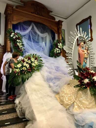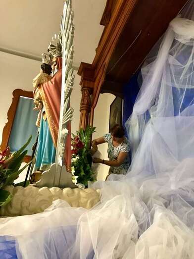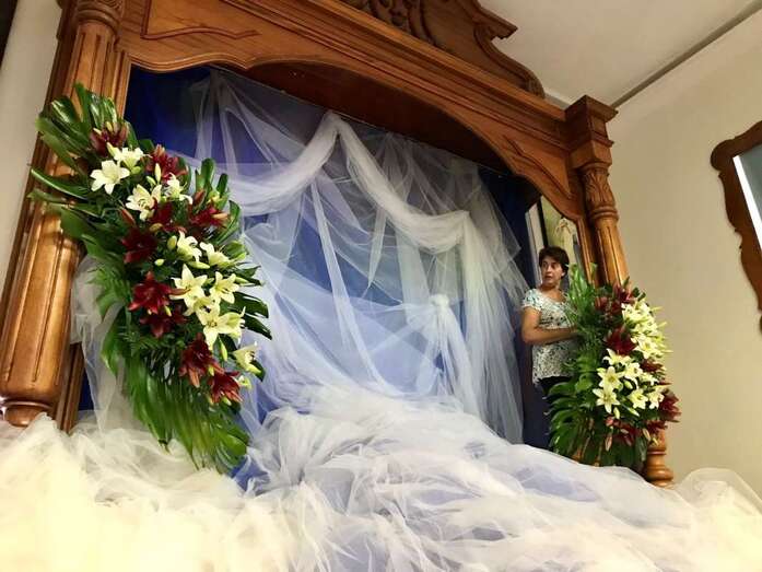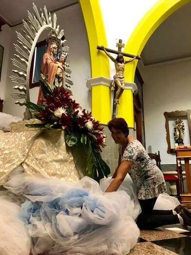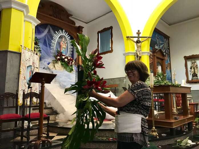 Esta tradición, la de adornar con flores y telas la Iglesia, se inició hace casi 50 años, con Juan Montesdeoca, antiguo presidente del Patronato, como uno de sus impulsores.