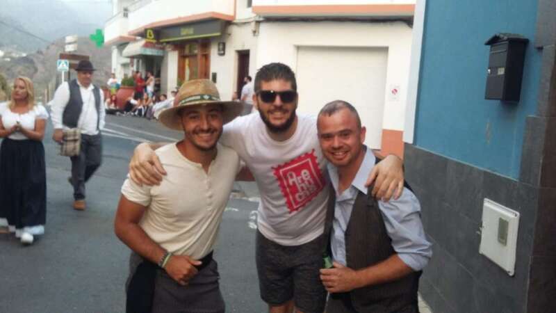 No faltó el tradicional bautizo callejero a tres componentes de la Banda de Agaete que acuden por primera vez a esta popular fiesta. Oficiaron de bautistas el concejal Juan Martel y los dirigentes vecinales Jonay López (AV La Talla) y Armando Quintana, del Patronato El Manantil.
