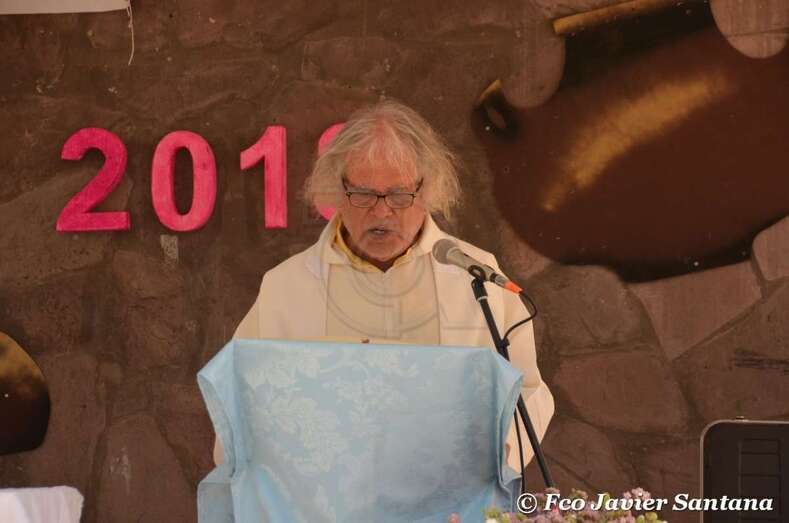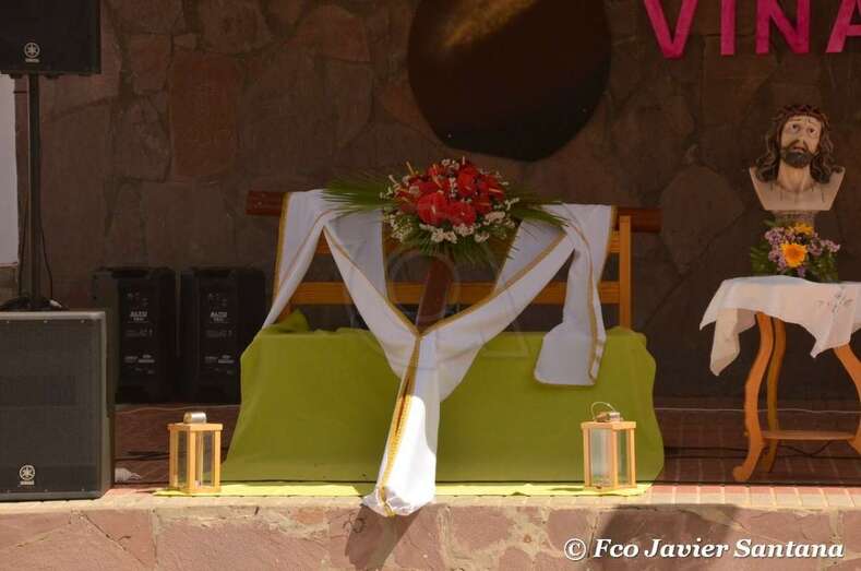 A las 12 del mediodía, con el sol en todo su esplendor, la plaza pública fue escenario de una misa oficiada por los sacerdotes Francisco Suárez y Fernando Báez, seguida desde la sombra de los árboles por decenas de fieles.