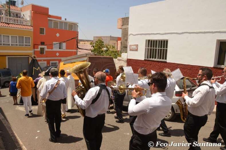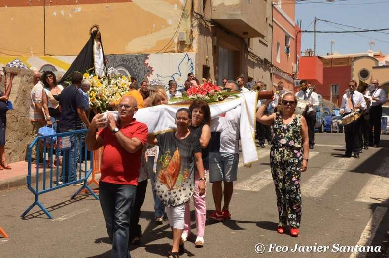 Tras la eucaristía, el trono de La Paloma salió en procesión por las calles de La Viña con el acompañamiento de la Banda de Gran Canaria y un nutrido grupo de fieles. La cantante Celia Jiménez entonó una malagueña desde el balcón de una vivienda al paso de la comitiva religiosa.