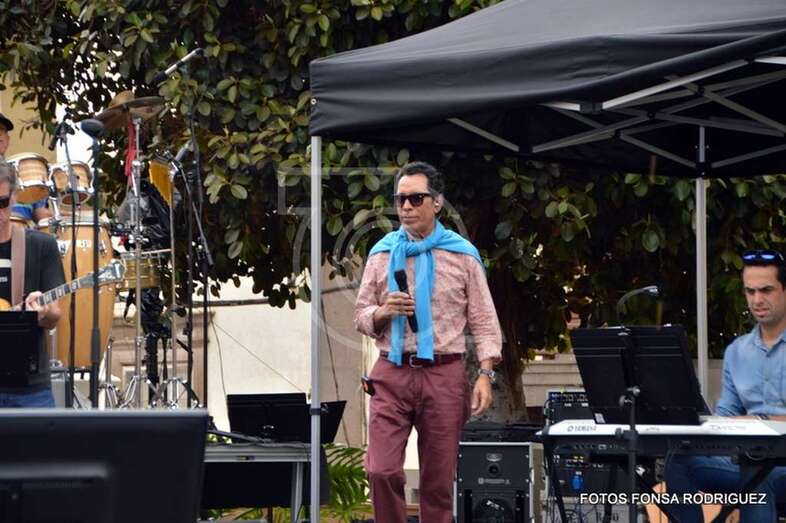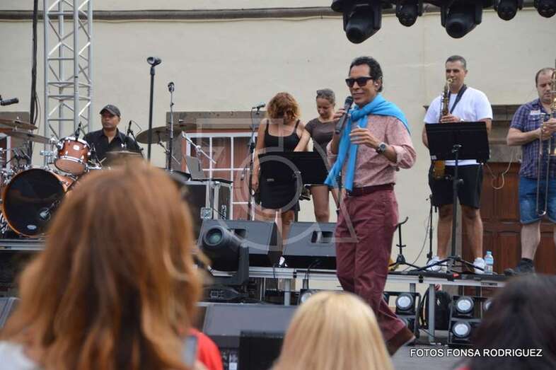 El teldense repasó desde el escenario sus principales éxitos musicales de una carrera profesional de más de cuatro décadas con el arrope de unos seguidores que coreaban las canciones del intérprete que representó a España en el Festival de Eurovisión en 1978 con Bailemos un vals.