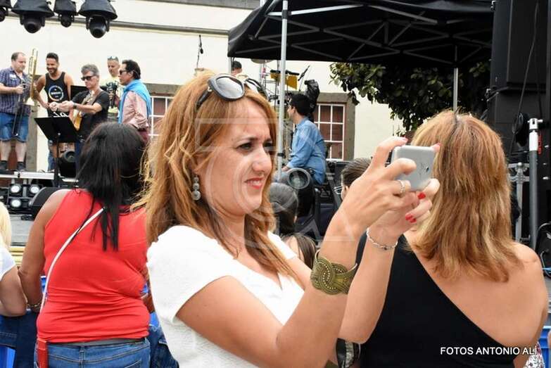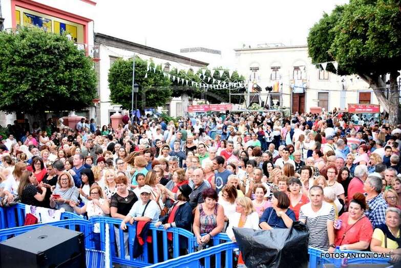 El público comenzó a congregarse y a ocupar sitio en la plaza pública principal del casco antiguo de Guía horas antes del inicio del recital enmarcado en los festejos principales de esta localidad grancanaria en honor de la Virgen.