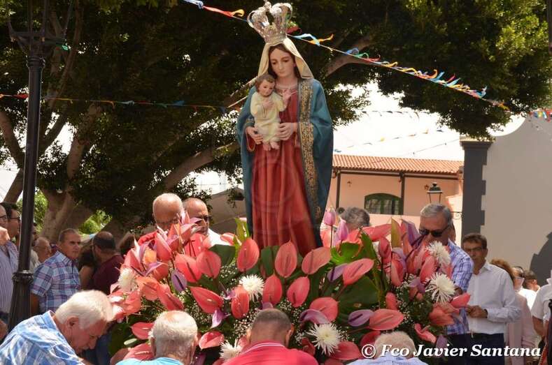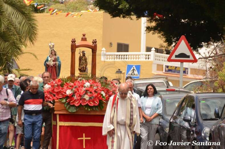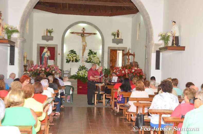 La jornada comenzó con la feria de ganado y una misa solemne oficiada por Nicolás Monche, canónigo de la Catedral de la Diócesis de Canarias, y concelebrada por el párroco de la zona, Eugenio Peñate, y el de San Pedro de El Ejido, José Antonio Ramos, que contó con el acompañamiento musical de la Parranda El Vino.