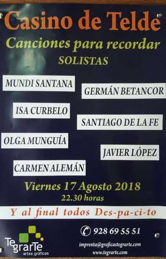 El nuevo equipo rector que preside Fernando Santana se ha propuesto revitalizar El Casino de Telde y durante este mes de agosto todos los viernes hay espectáculos musicales. La pasada semana actuó con gran éxito el grupo Charlie's & Ruano Band y antes lo hizo la histórica formación Full Stop.