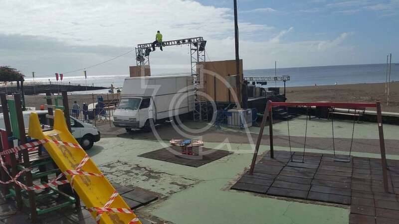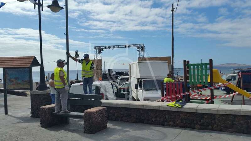 La acción de protesta del conocido feriante coincidía en el tiempo en Melenara con zafarrancho de operarios y particulares que participan en las labores de montaje de chiringuitos y del escenario donde tendrá lugar esta noche el pregón y los espectáculos musicales previstos en las fiestas.