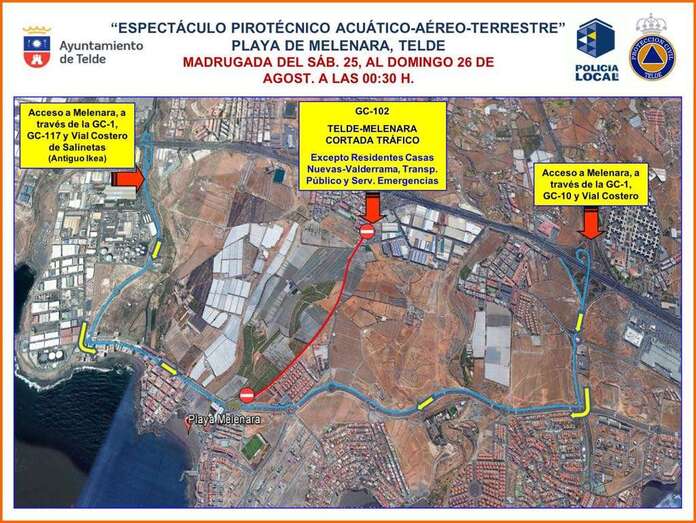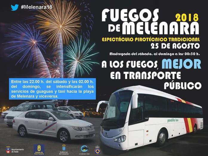 Para facilitar la asistencia, el Consistorio ha acordado con las empresas de transporte público de Telde – las dos cooperativas de taxi y La Pardilla Bus- la intensificación del servicio. En ese sentido, entre las 22.00 y las 02.00 horas las guaguas, taxis y los peatones tendrán prioridad en la carretera de acceso desde el Cruce de Melenera, que alternará los sentidos para evitar aglomeraciones e incidentes.