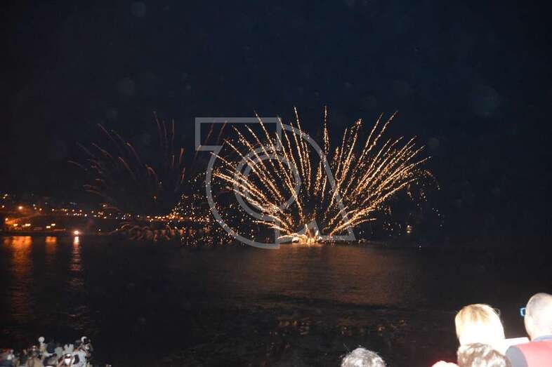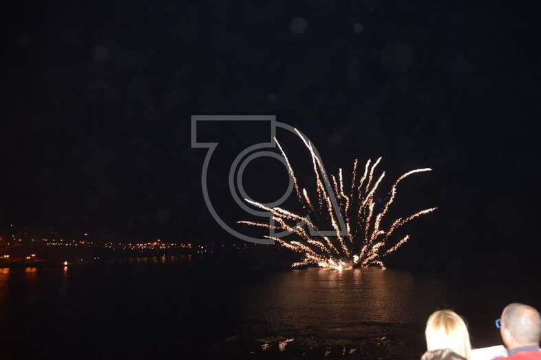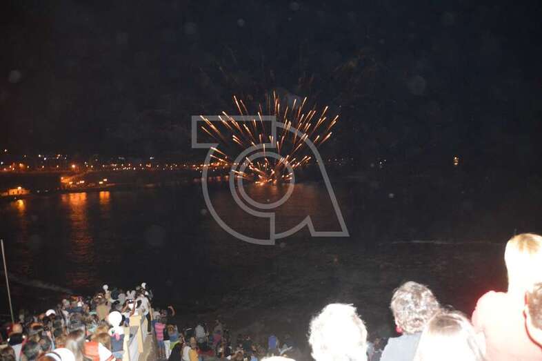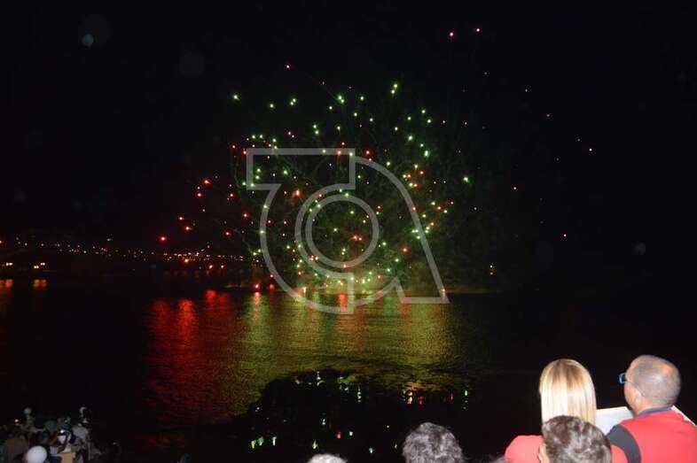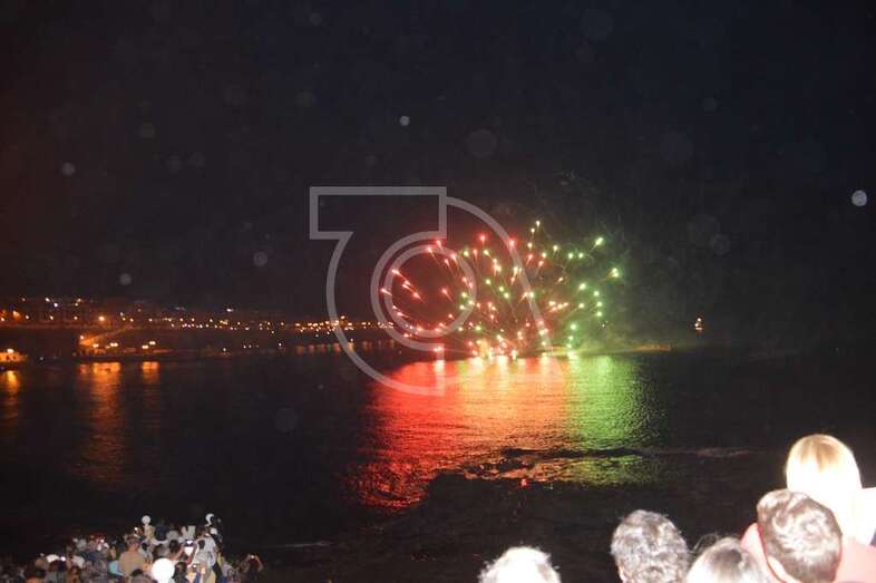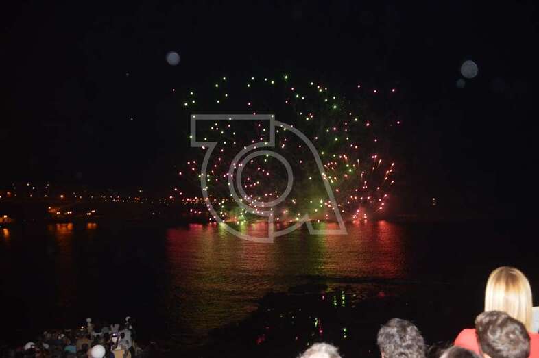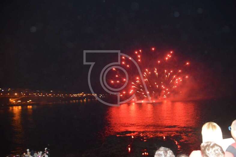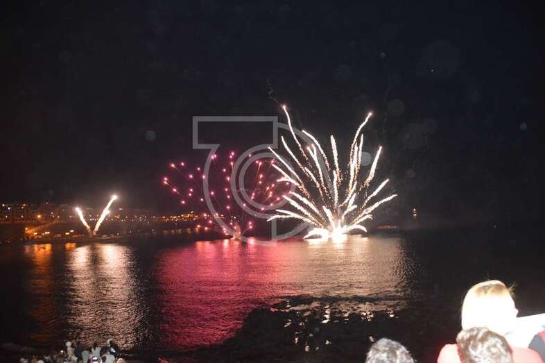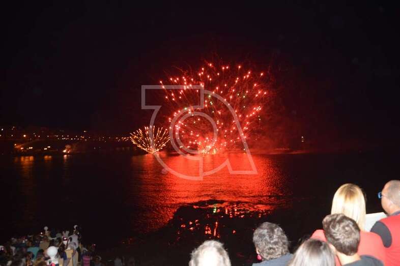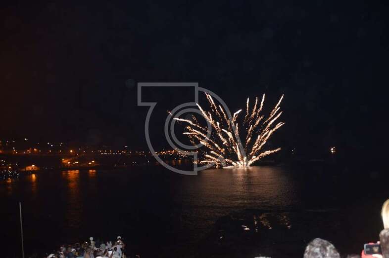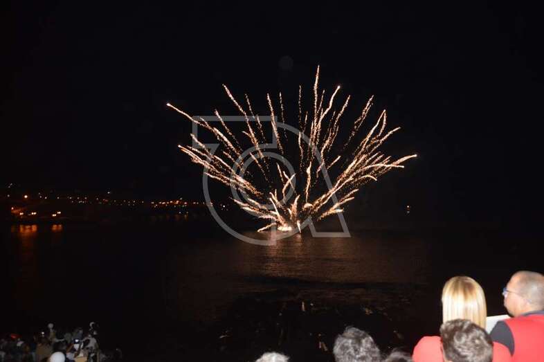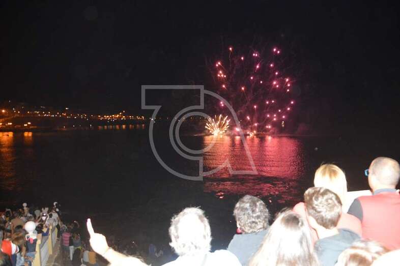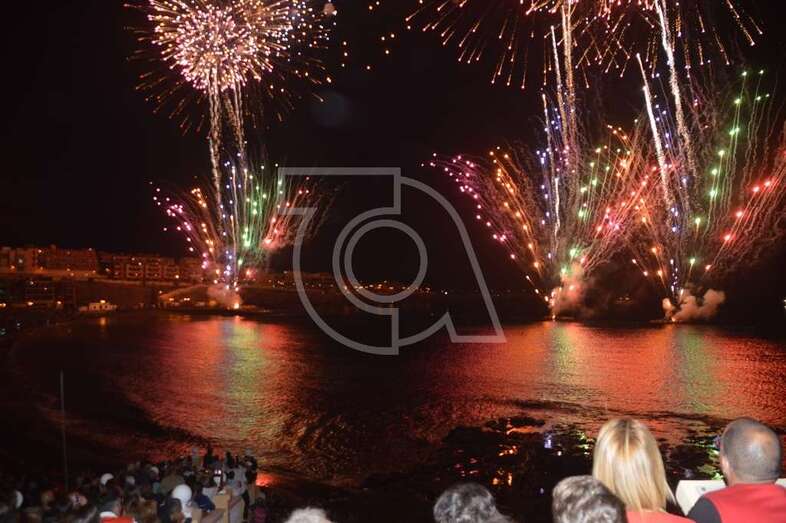 Los fuegos artificiales que ponen el sello a los festejos que comenzaron el pasado 17 de agosto y finalizaran este domingo encantaron al gentío que permaneció embebido con las figuras de variados colores que formaban en el aire las creaciones de la empresa teldense Piromart, que quemó unos 250 kilos de material pirotécnico durante la magna exhibición cromática y de sonido que iluminó y se dejó oír en toda la bahía de Melenara, incluyendo la playa cercan de Salinetas y la zona residencial de Taliarte. Las excelentes condiciones meteorológicas, una noche sin viento casi, ayudaron al éxito del espectáculo.